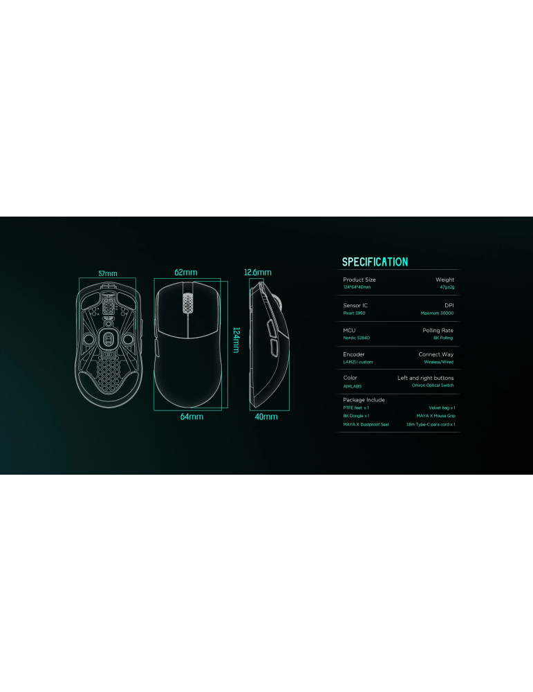 Професионална геймърска мишка Lamzu MAYA X 8K - Wireless Gaming Mouse - Aimlabs Edition - LAMZU-MAYA-X-AIMLABS