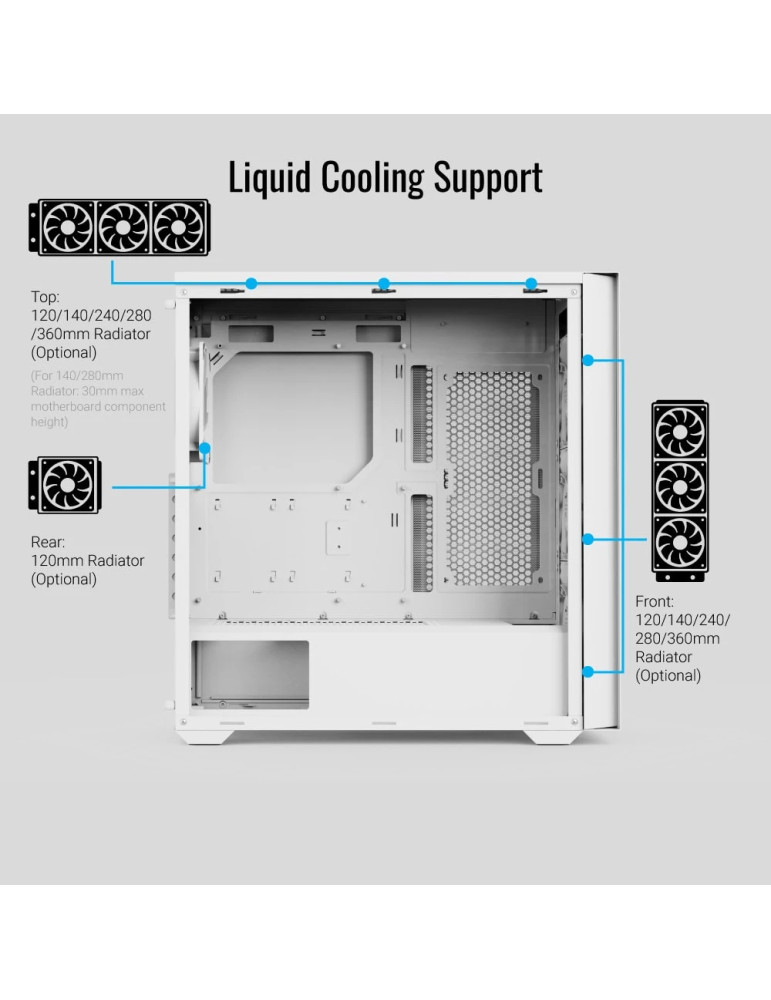 | ПОДДРЪЖКА НА ВОДНО ОХЛАЖДАНЕ | 120 mm - Отгоре 120 mm - Отзад 120 mm - Отпред 140 mm - Отгоре 140 mm - Отпред 240 mm - Отгоре 240 mm - Отпред 280 mm - Отгоре 280 mm - Отпред 360 mm - Отгоре 360 mm - Отпред |