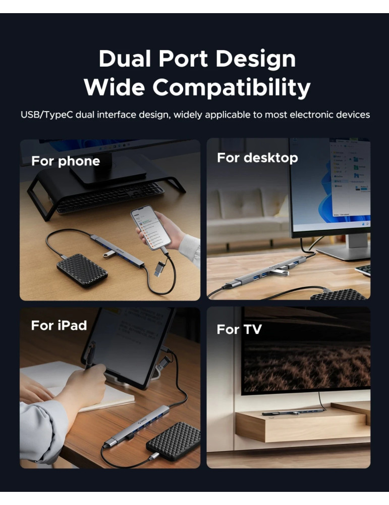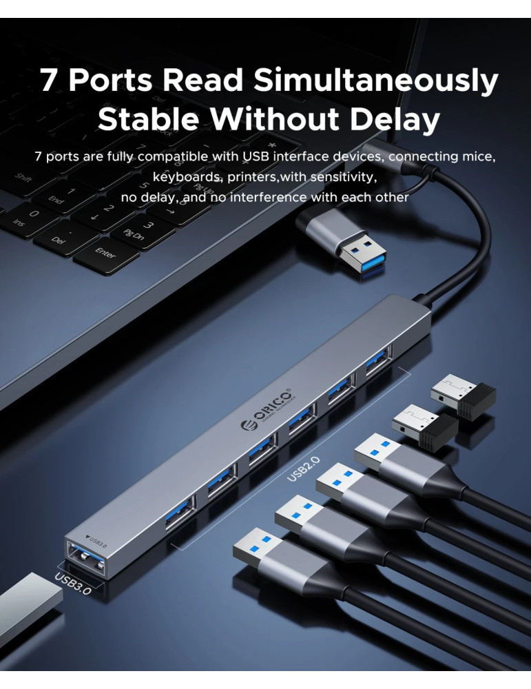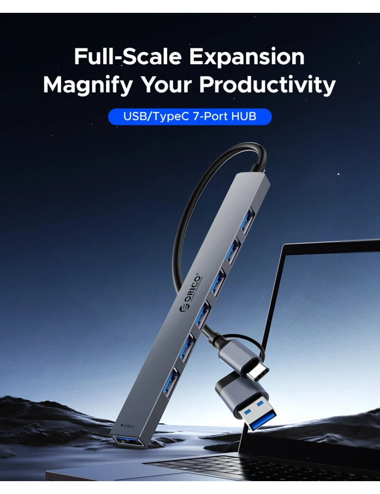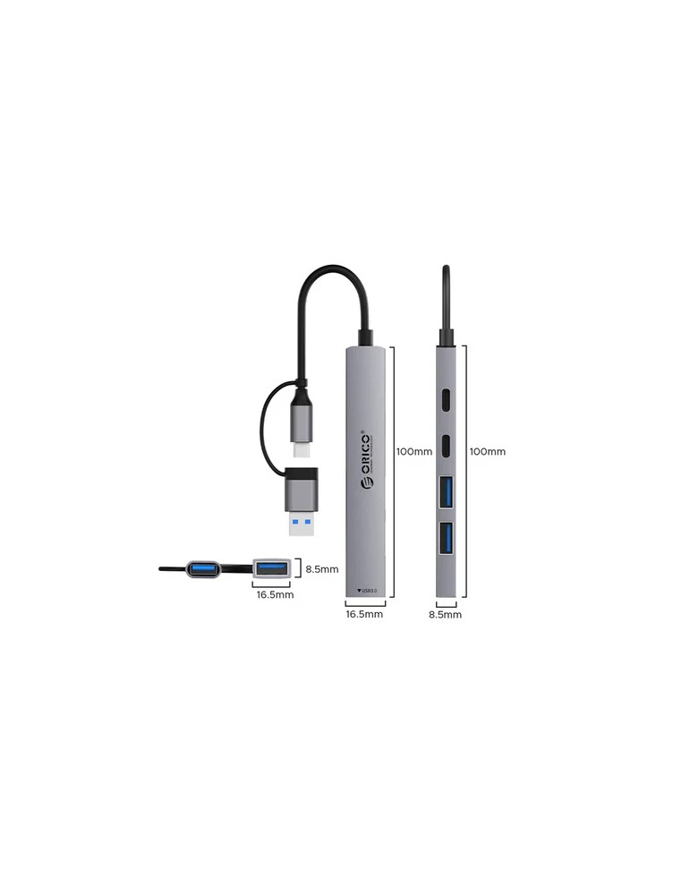 Хъб Orico HUB USB-C 5 port - USB3.0 x 1, USB2.0 x 2, USB-C x 2, Aluminium - YSA4-U2-GY