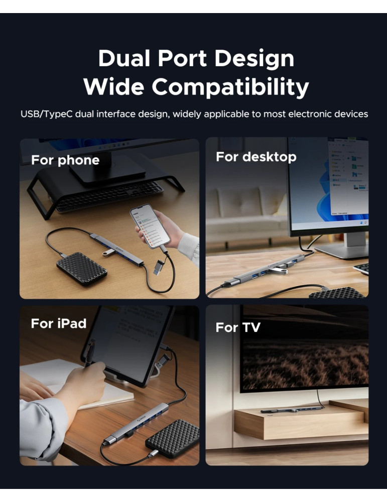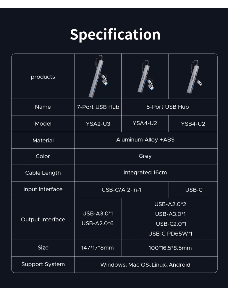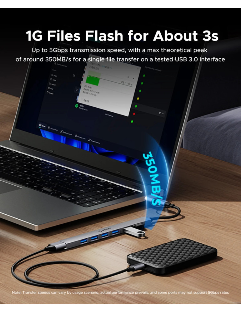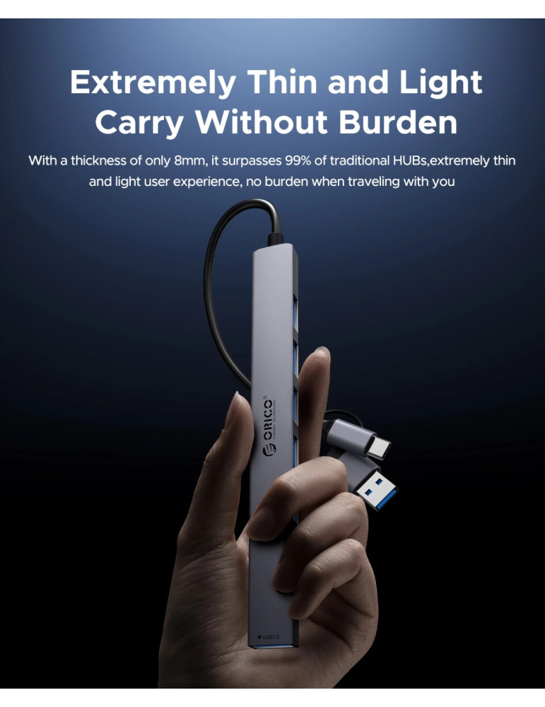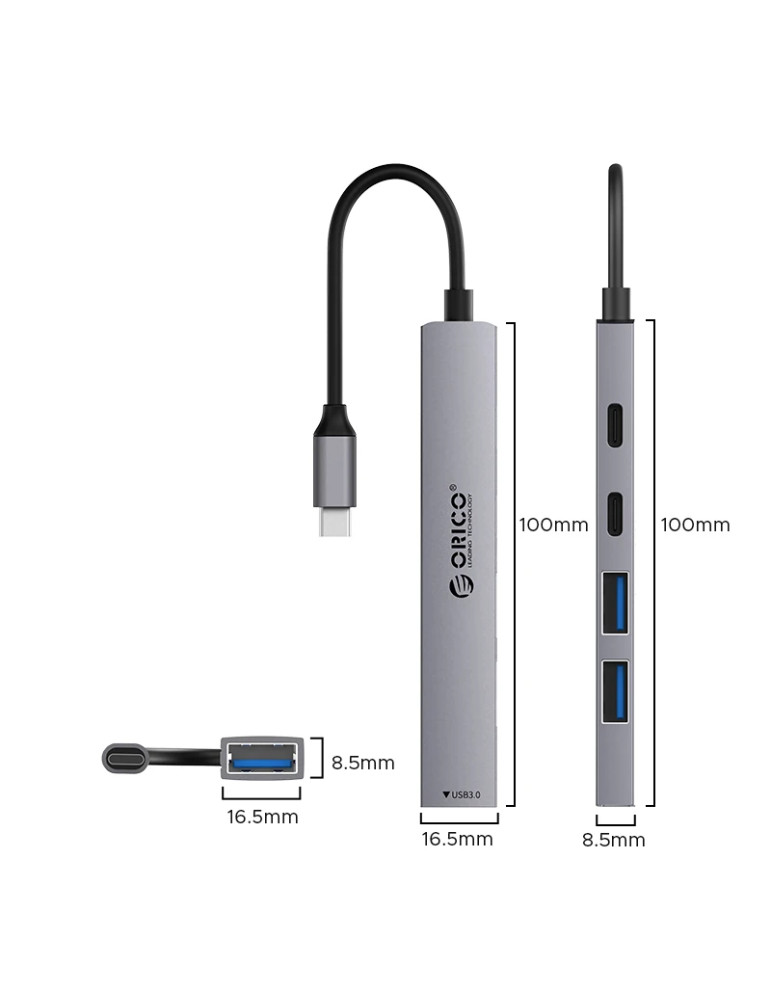 Хъб Orico HUB USB-C 5 port - USB3.0 x 1, USB2.0 x 2, USB-C x 2, Aluminium - YSB4-U2-GY