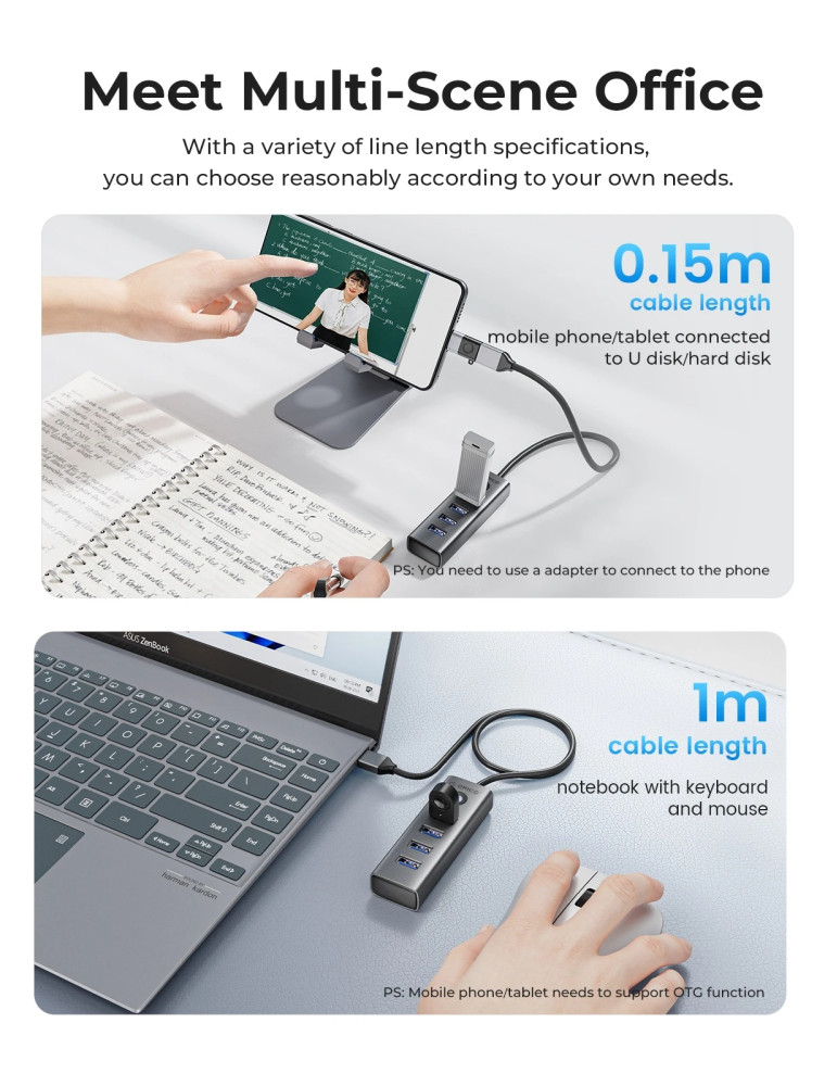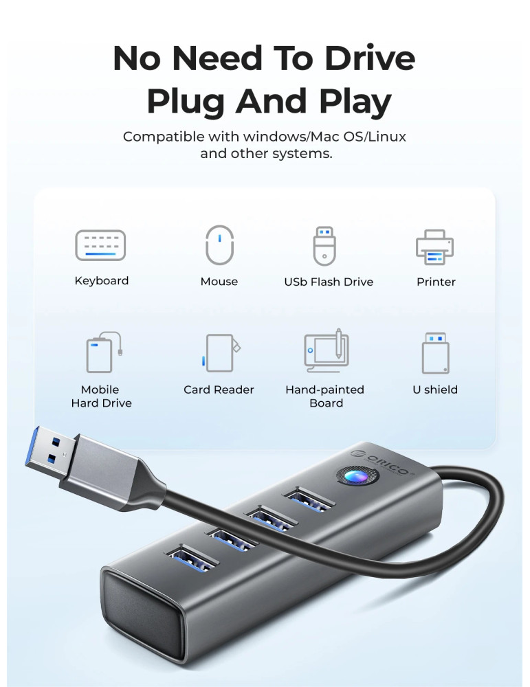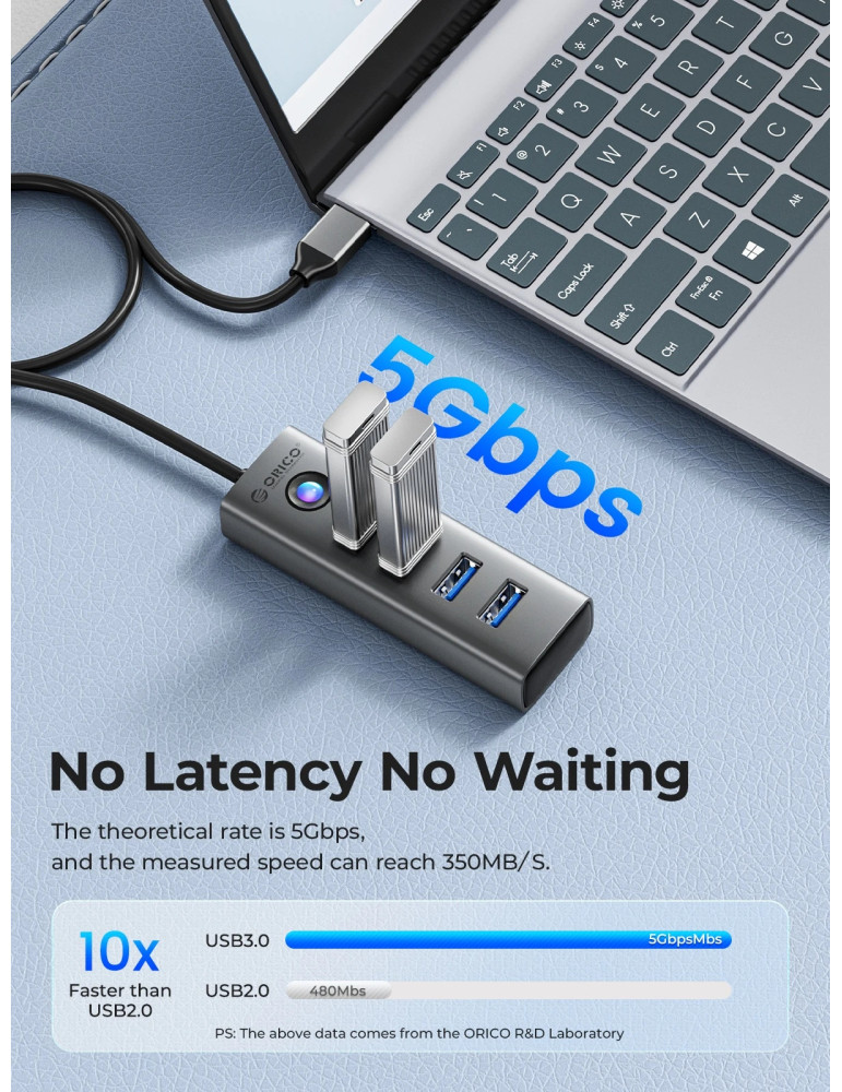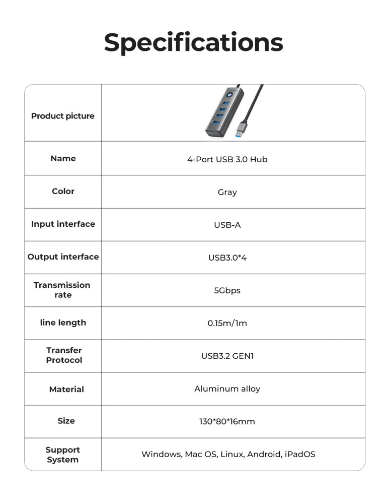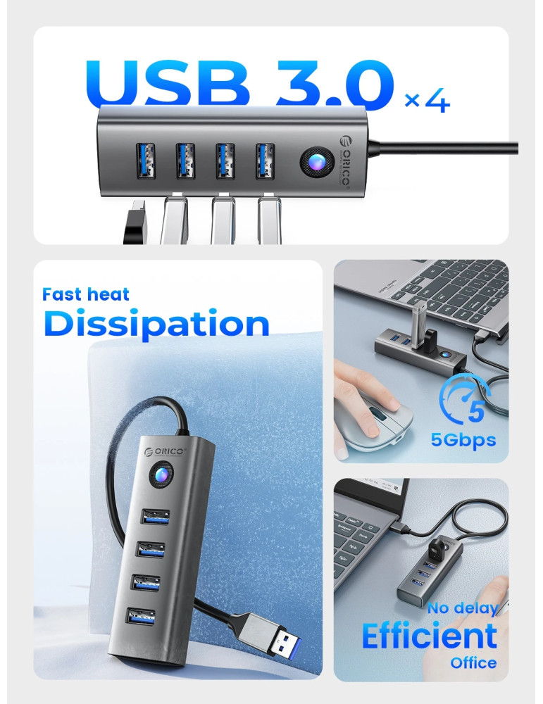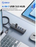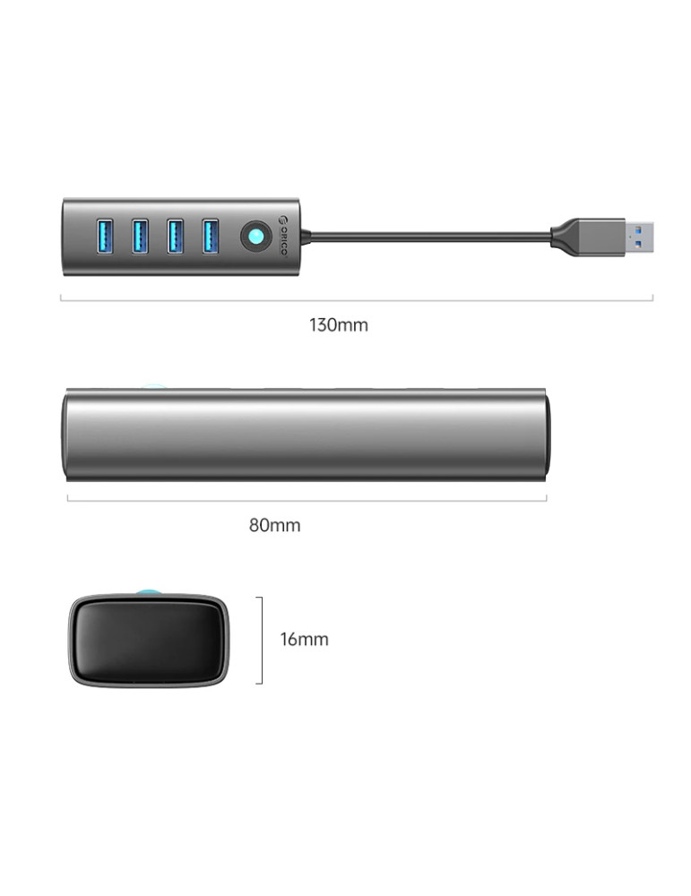 Хъб Orico HUB USB3.0 4 port, Aluminium, Grey - PDD4U-U3-015-GY