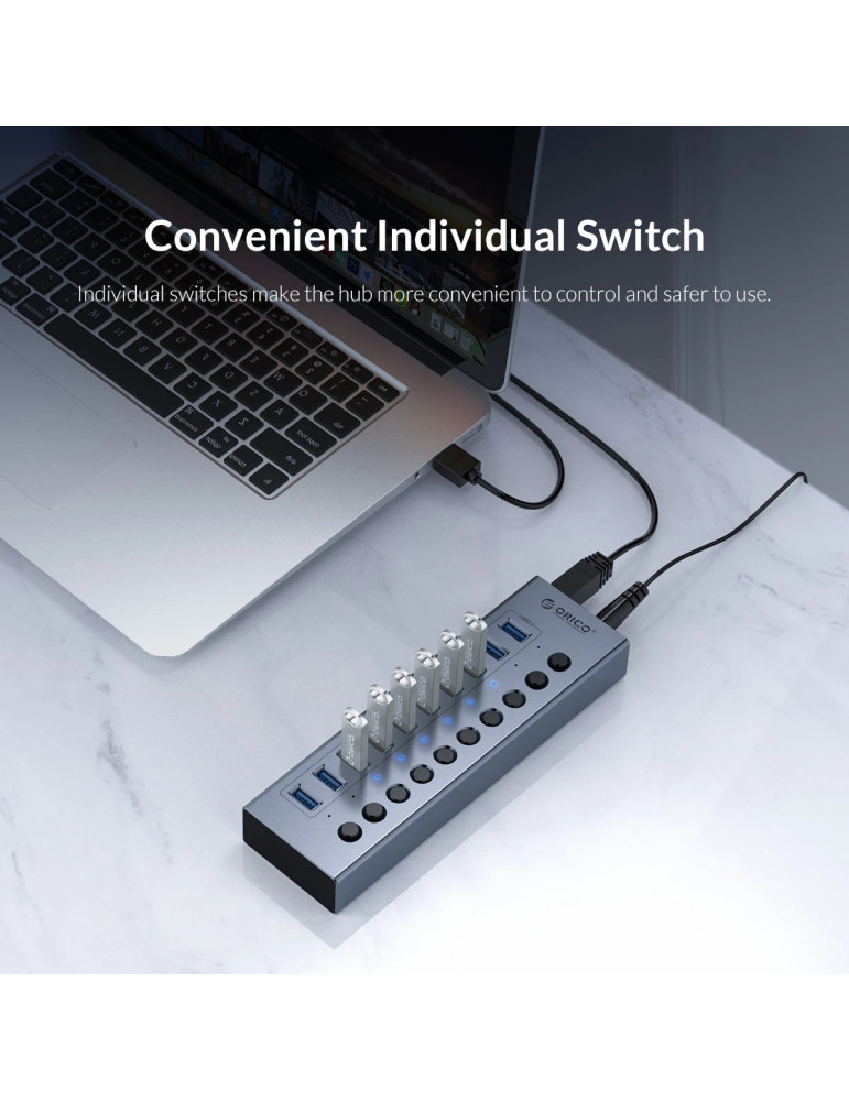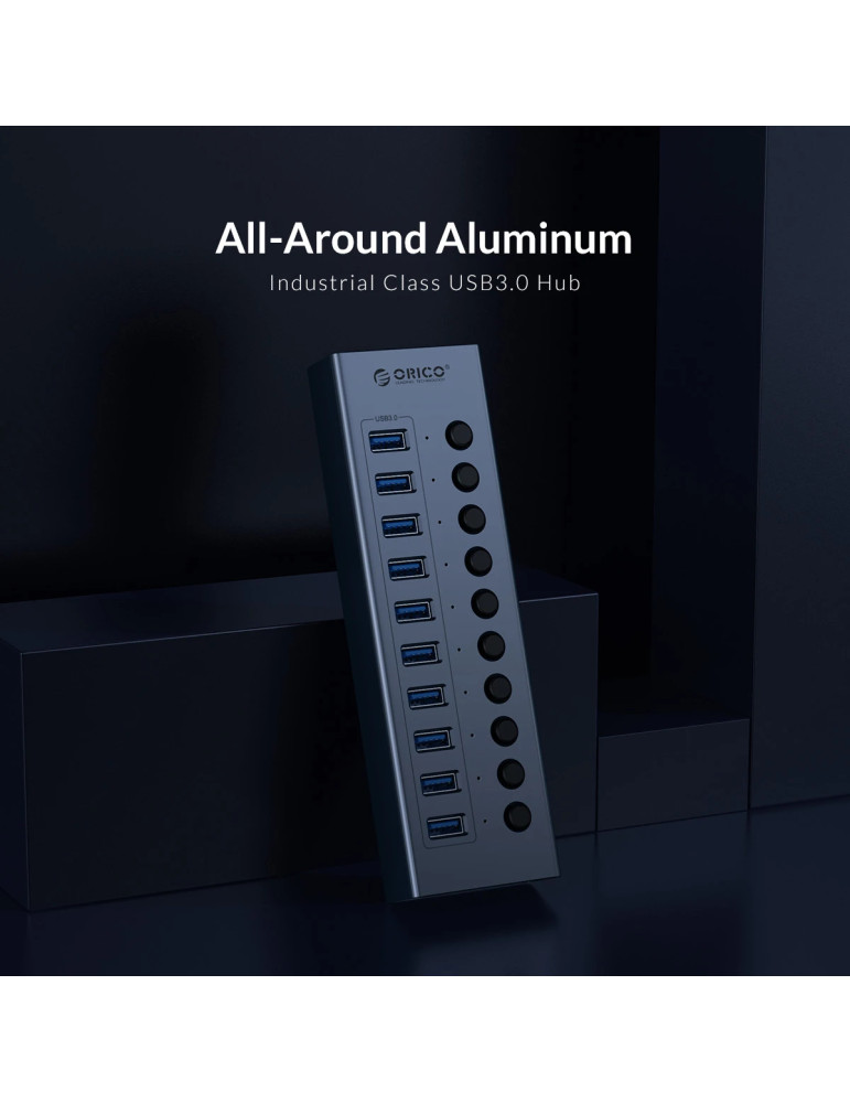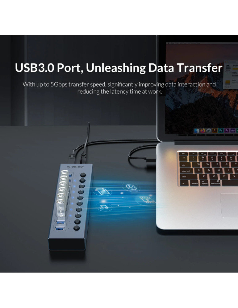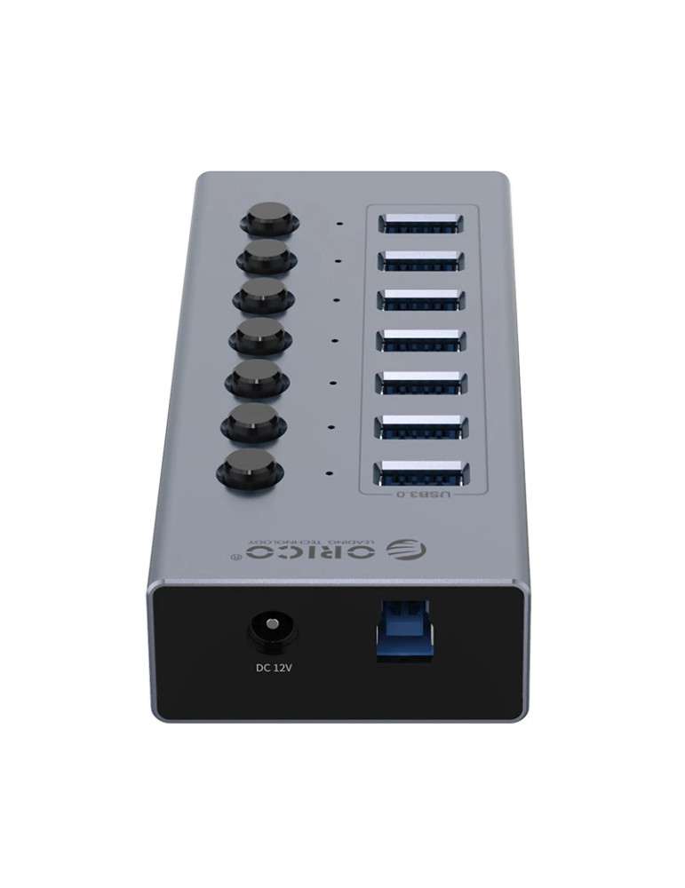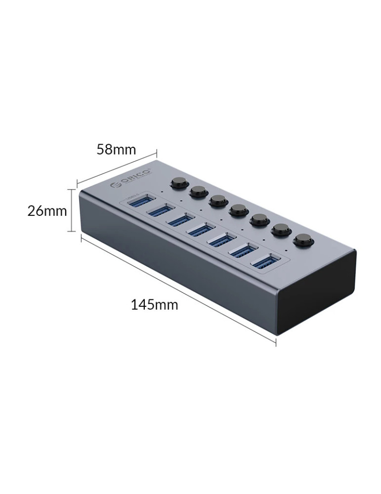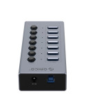 Хъб Orico HUB 3.0, 7 port with Power Adapter, On/Off buttons, Aluminium - BT2U3-7AB-EU-GY