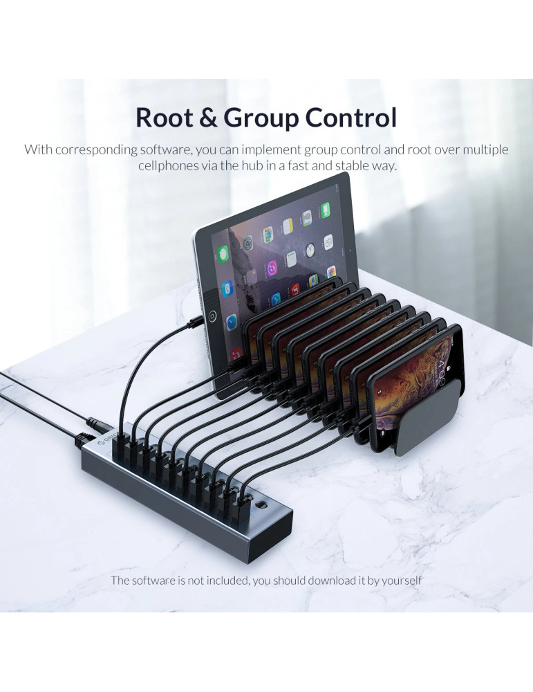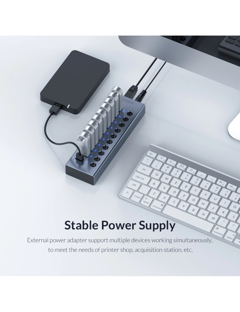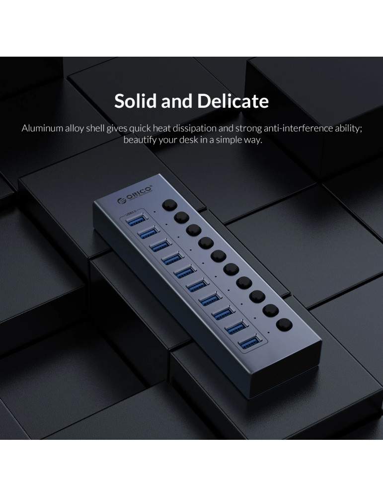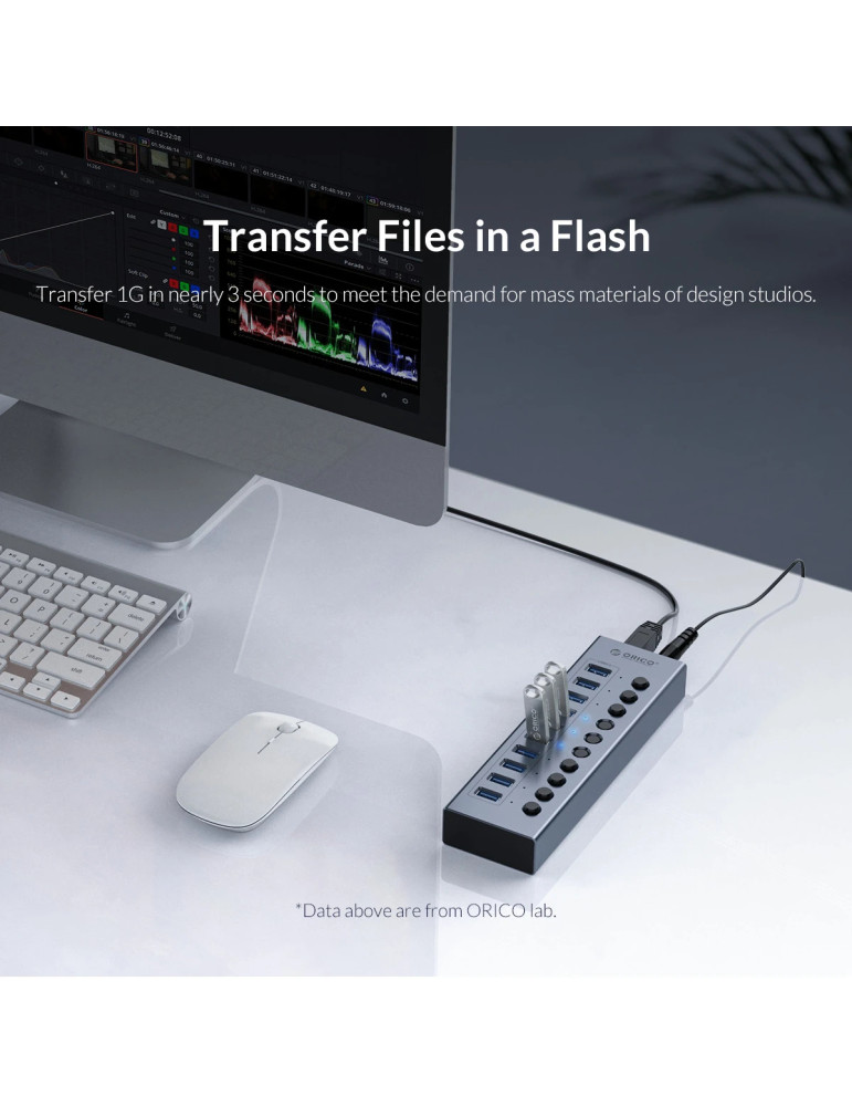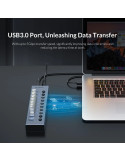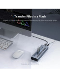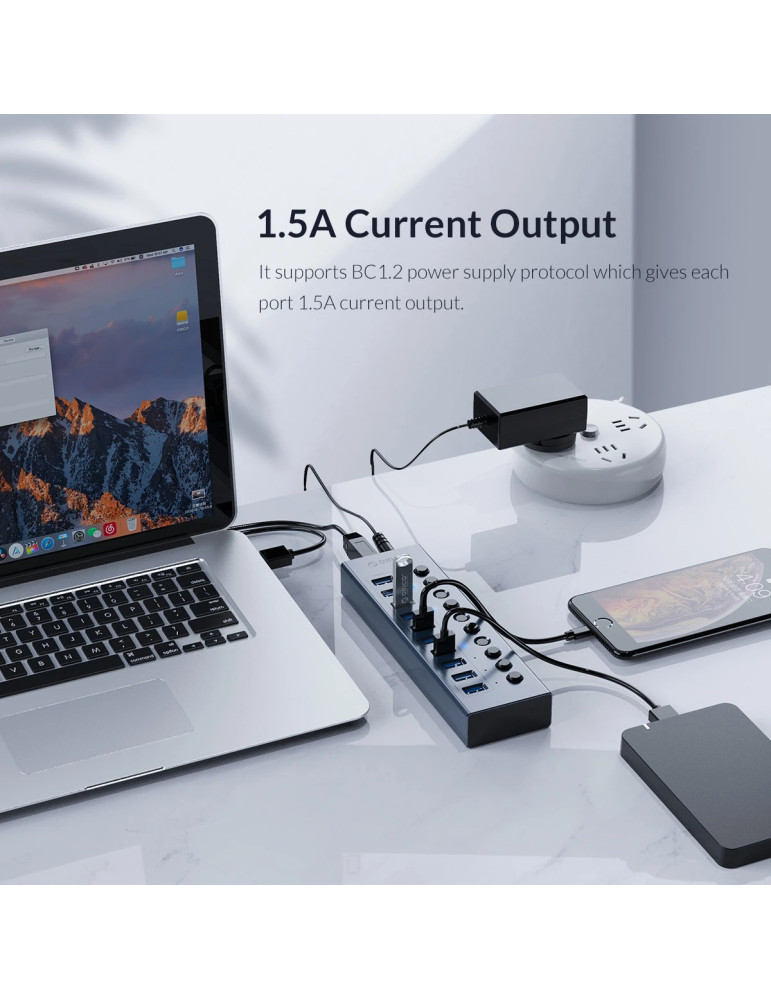 Хъб Orico HUB 3.0, 7 port with Power Adapter, On/Off buttons, Aluminium - BT2U3-7AB-EU-GY