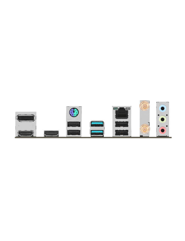 | Вх/Изх | 2 x USB 3.2 Gen 2 ports (2 x Type-A );4 x USB 2.0 ports (4 x Type-A);1 x DisplayPort;2 x HDMITM ports;1 x Wi-Fi Module;1 x Realtek 2.5Gb Ethernet port;3 x Audio jacks;1 x PS/2 Keyboard/Mouse combo port |