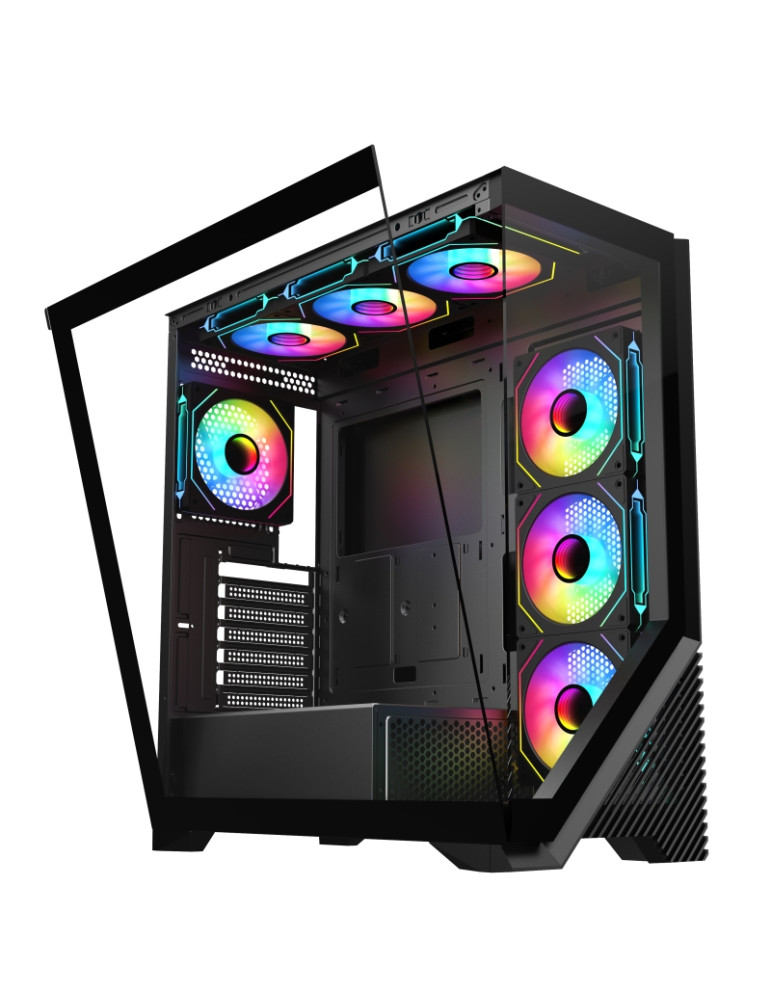 Кутия за компютър Trendsonic FC-AR17A-ARGB, 7 slots, 1 x Type C, 2 X USB 3.0, 4 x ARGB, remote, Without PSU, Black