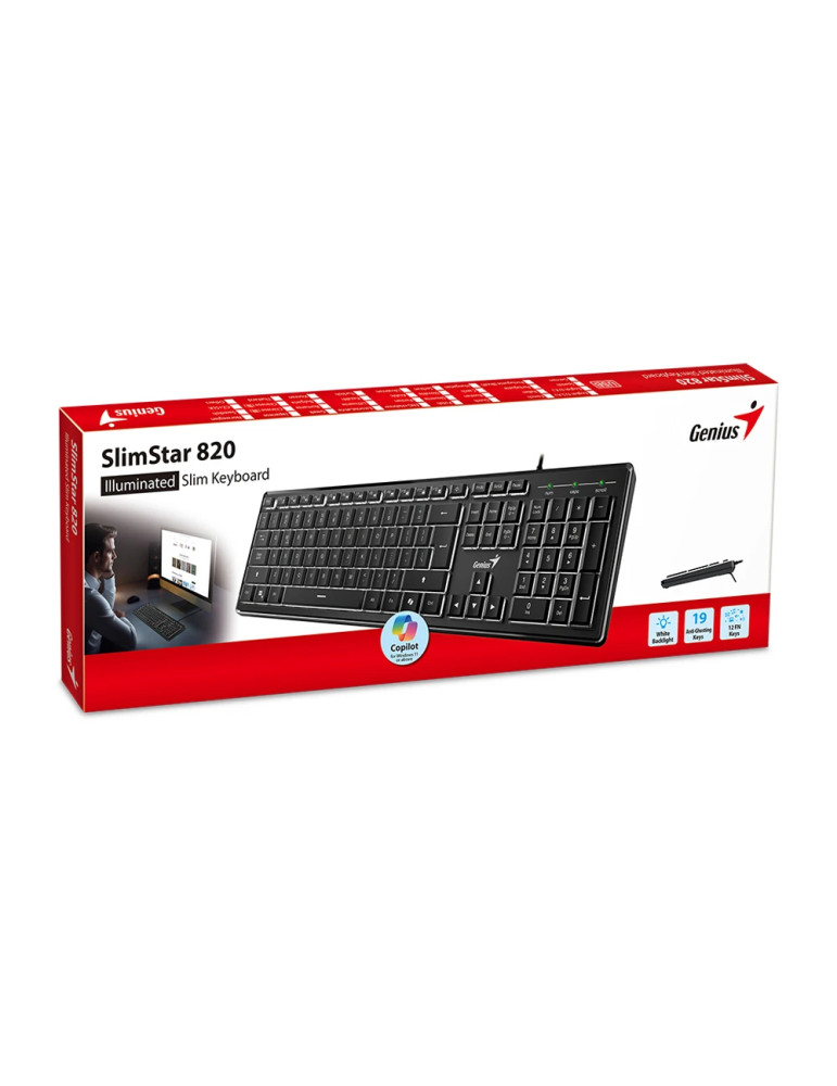 Клавиатура Genius SlimStar 820 Black - AI, Illuminated, Slim, BG, USB - GENIUS-SLIMSTAR-820-BLK