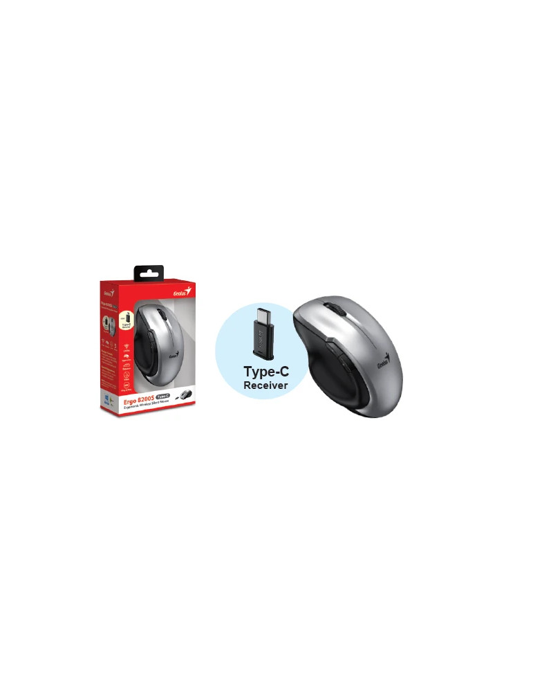 Безжична безшумна мишка Genius Ergo 8200S Silver, Silent, 2.4GHz, USB-C receiver - GENIUS-ERGO-8200S-SLV
