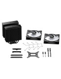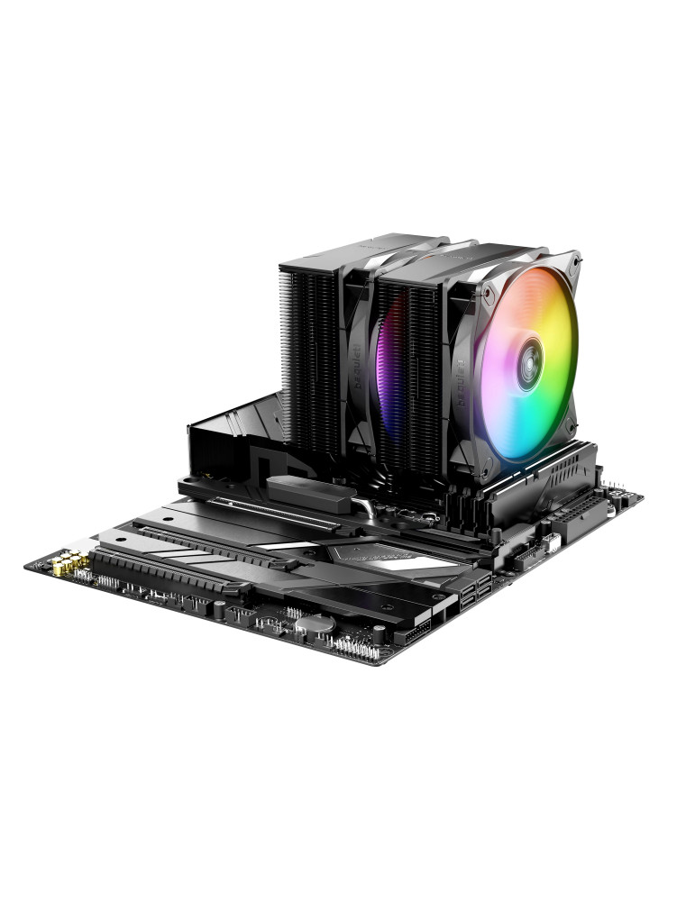 | ДОПЪЛНИТЕЛНИ | 2 Light Wings LX 120mm PWM ARGB fans with funnel shaped air outlets for equally high performance and stunning visuals 6 black high-performance 6mm heat pipes with nickel-plated base Achieves only 34.8dB(A) at maximum fan speed Compatible with liquid metal thermal grease Elegant looks in an all-black design High RAM and VRM cooler compatibility thanks to a compact offset design |