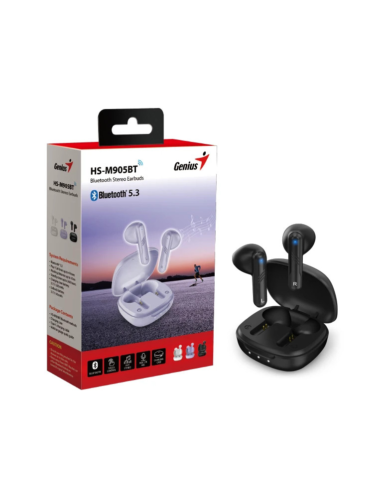 Bluetooth слушалки Genius HS-M905BT Black, TWS Bluetooth 5.3 Earphones - GENIUS-HS-M905BT-BK