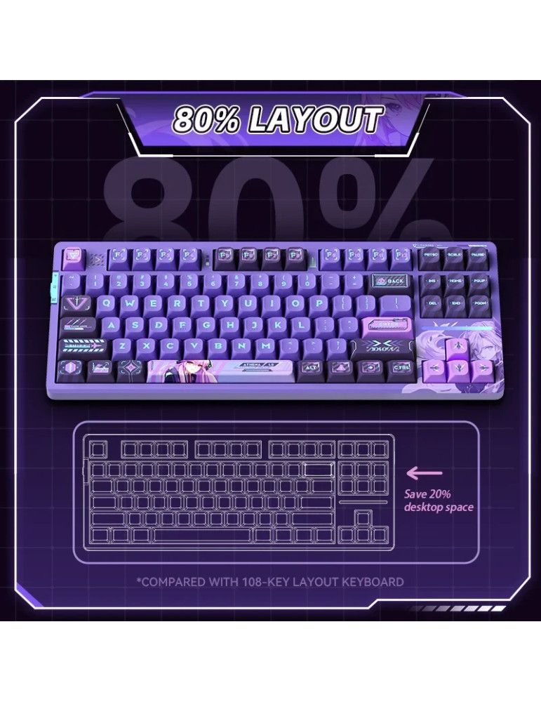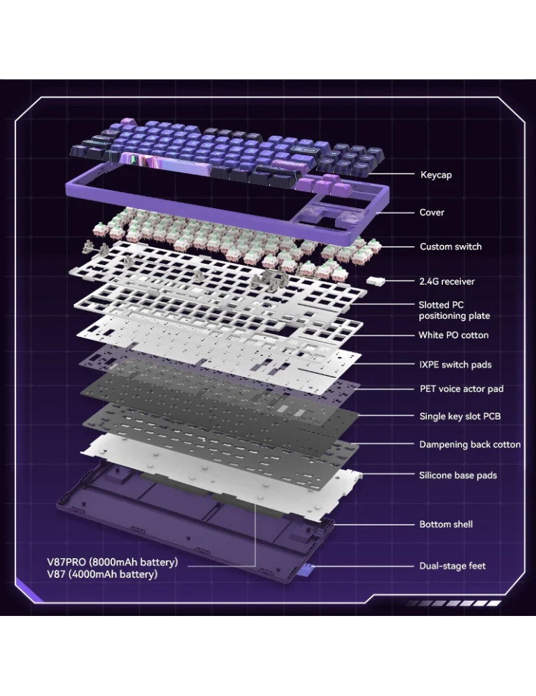 Безжична геймърска механична клавиатура VGN V87 Starry Sky, Dynamic Silver Switches, Linear - V87-STARRY-BL-PS