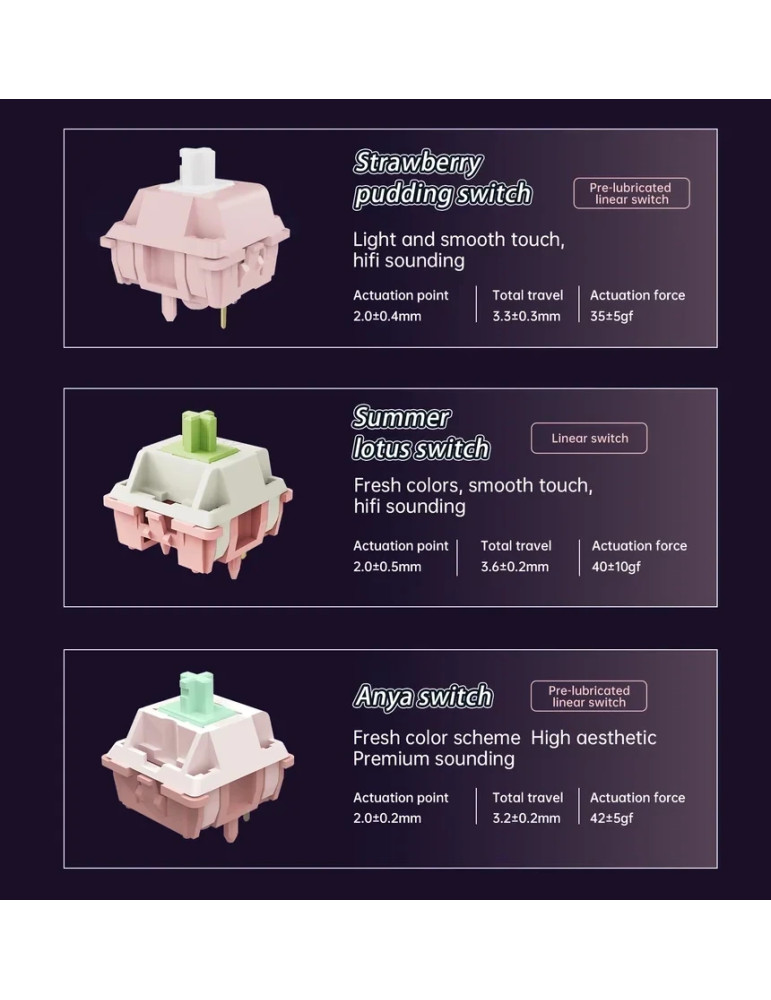 | ДОПЪЛНИТЕЛНИ | 16.8M RGB 8000 mAh battery Gasket Structure Hot-Swappable Switches Low latency mode N-key rollover Silicone dampening pads Single key slot PCB White Poron foam |