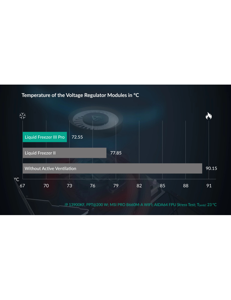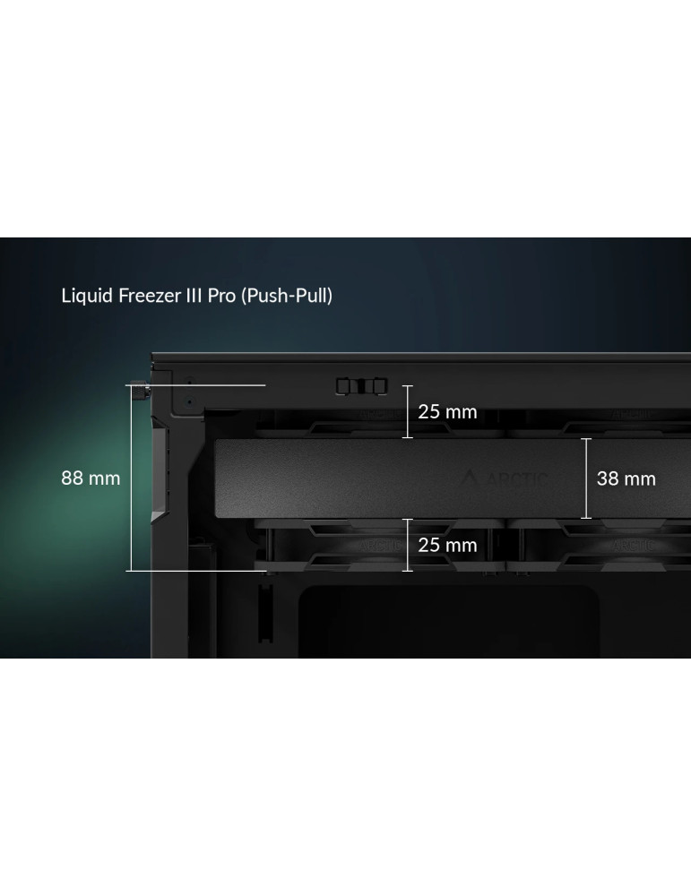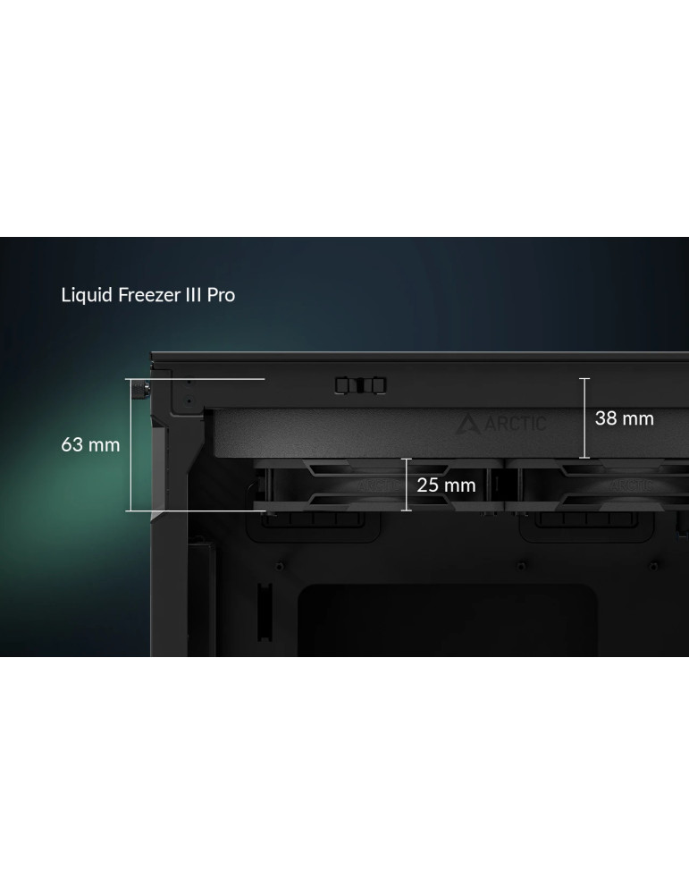 | ДОПЪЛНИТЕЛНИ | 38 mm radiator Includes MX-6 Thermal Paste Includes MX-6 Thermal Paste New P12 Pro Fans Integrated VRM Fan Intel Contact Frame New P12 Pro Fans Offset Mounting for Intel and AMD Please note that the Liquid Freezer requires at least 63 mm of clearance for installation Reinforced EPDM tubing with braided sheathing for increased durability Two Control Options |