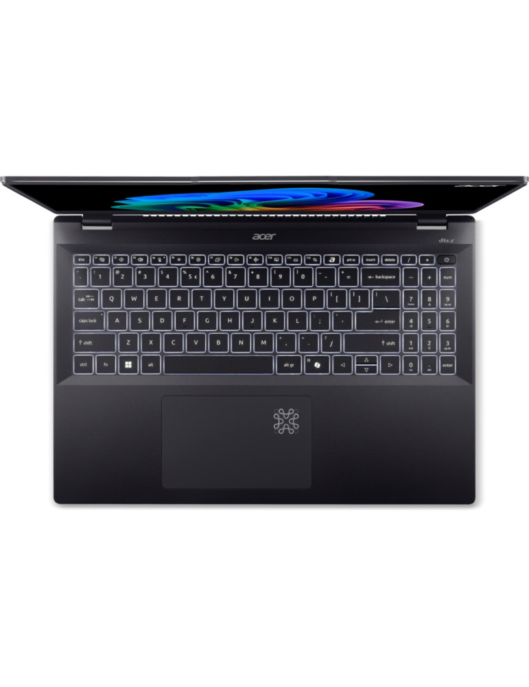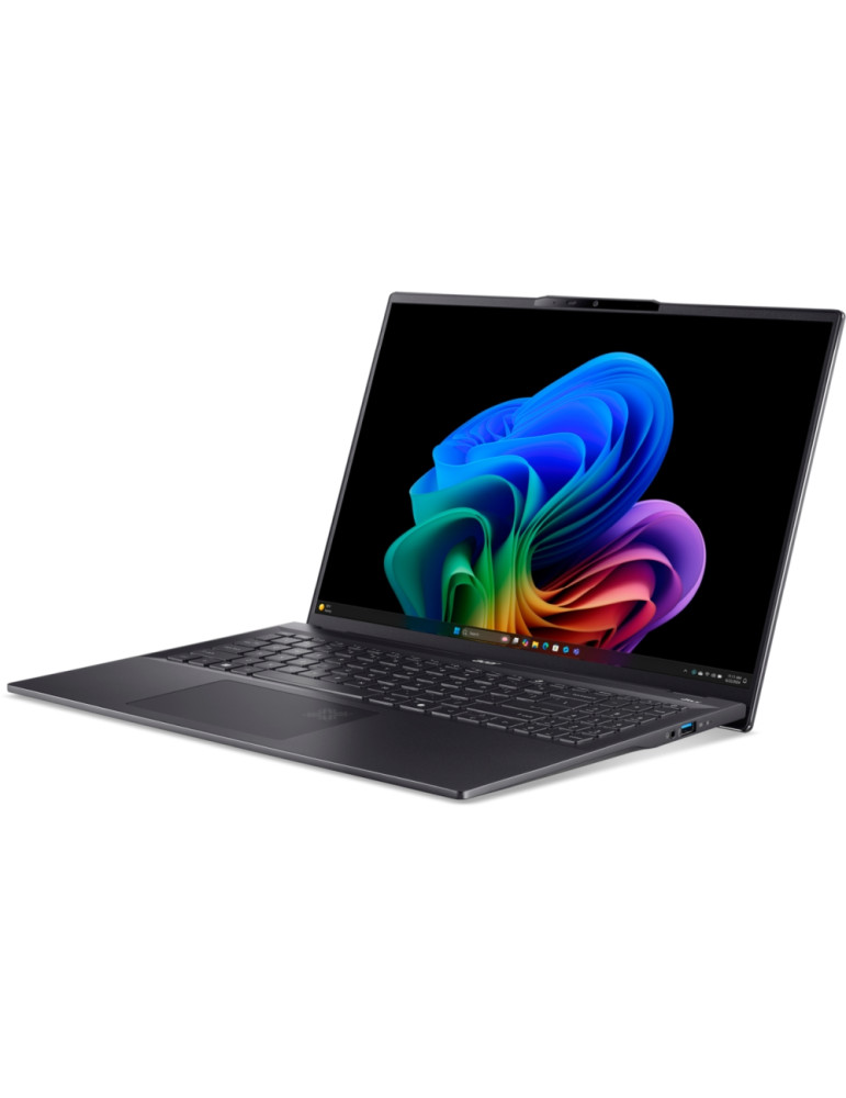 Лаптоп Acer Swift 16 AI, SF16-51-99ND, Intel Core Ultra 9, (up to 5.10GHz, 12MB), 16" 2.8K OLED (2880x1800) DCI-P3 100%, 32GB LPDDR5X 6400MHz on board, 1024GB PCIe NVMe SSD, Intel UMA, QHD Cam, WiFi 7, BT 6E, Backlit Kbd, Win 11 Home, Ice Black - NX.J3ZEX.00C