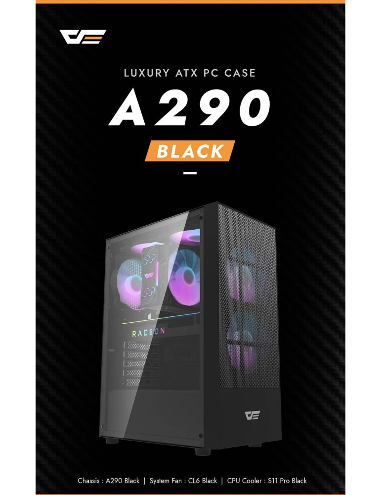Кутия за компютър Darkflash A290 Black, ATX, с включени 3бр RGB вентилатора - A290-BK