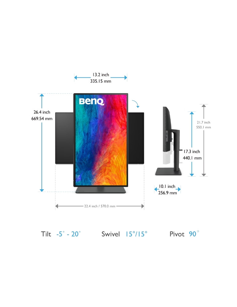 Монитор BenQ PD2506Q 25" IPS, 2560x1440 WQHD, 95% P3, DisplayHDR 400, Uniformity, KVM, MST Daisy Chain, USB-C 65W Power Delivery, HDMI, DP, HAS, eye-care, Factory Calibration, Calman Certification, Panetone Validation, 4-side edge to edge, USB Hub, eye-care, De - 9H.LLDLB.QBE