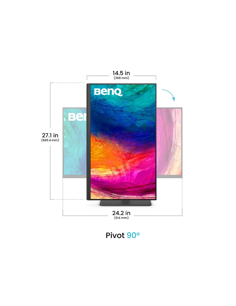 Монитор BenQ PD2706QN, 27", 100Hz, 4K IPS, AQCOLOR, Designer, Pantone, Nano Matte Panel, HDR10, 100% sRGB, Card Reader, HDMI (2.0), DP (1.4), USB-C (DP alt. PD 90W), USB Hub, 3.5 Jack, 2x 3W, Pivot, Height adj. 115mm, VESA 100 - 9H.LNDLA.TBE