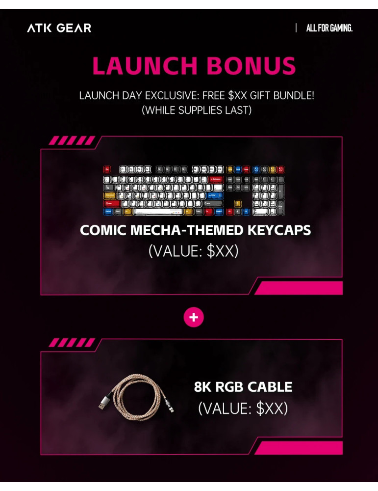Професионална геймърска механична клавиатура ATK RS6 - 8K, Gateron Jade Pro Switches [Linear] - White - RS6-WH-GJP