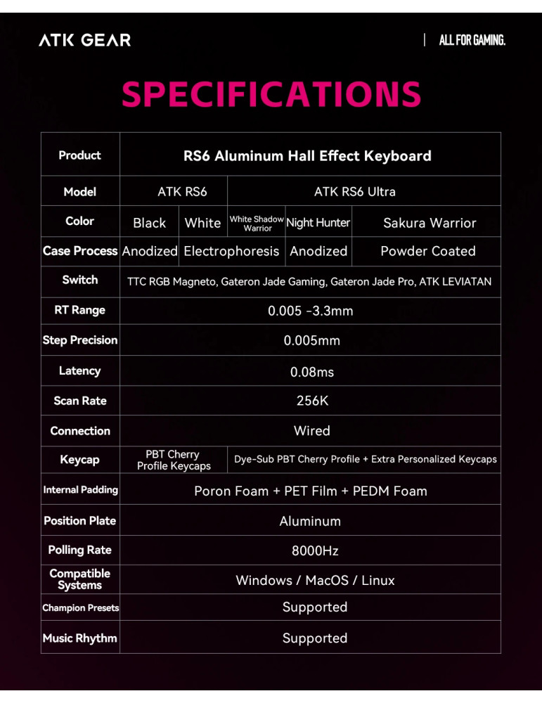 | ДОПЪЛНИТЕЛНИ | Champion Presets: Supported Developed with Champion PRO Player - ASPAS Extra Personalized Keycaps Inside Extreme RT Precision - 0.005 mm Full Aluminium Position Plate Latency: 0.08 ms TTC RGB Magneto Switches - King of Magnetic Switches White Shadow Warrior |