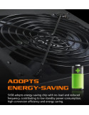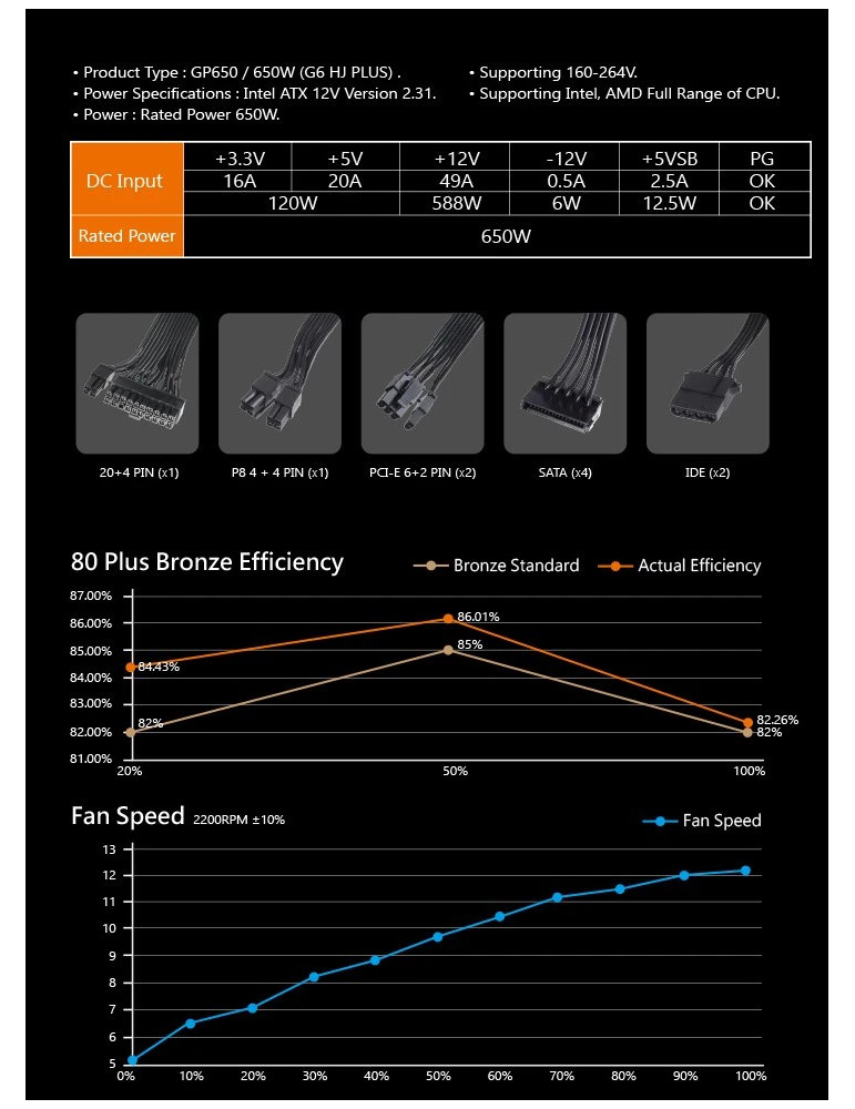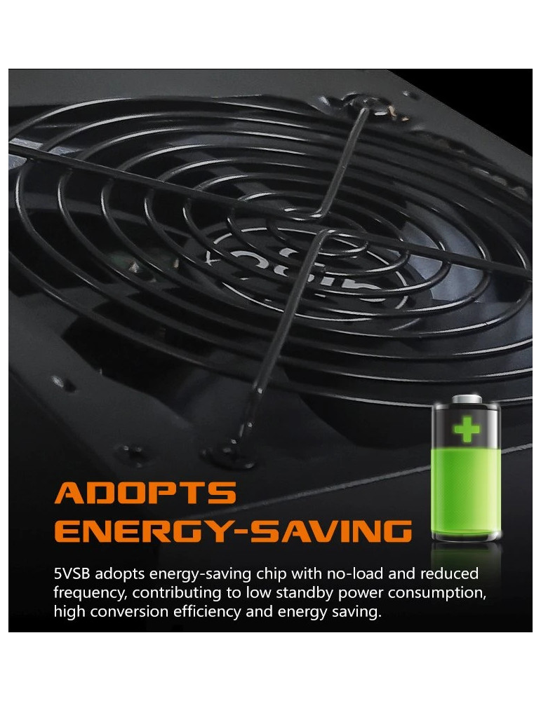 | ДРУГИ | 5VSB adopts energy-saving chip with no-load and reduced frequency, contributing to low standby power consumption, high conversion efficiency and energy saving Flat Copper Cables (Black Color) Low Ripple Noise; Active PFC Type Ultra Quiet Fluid Dynamic Bearing PWM Fan |