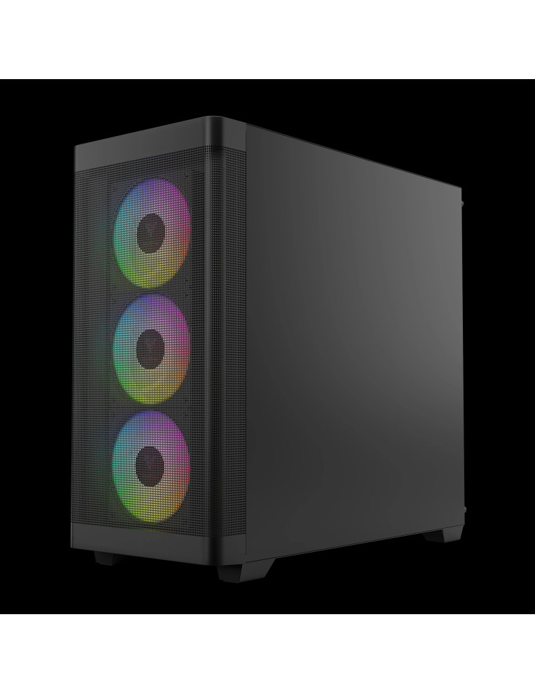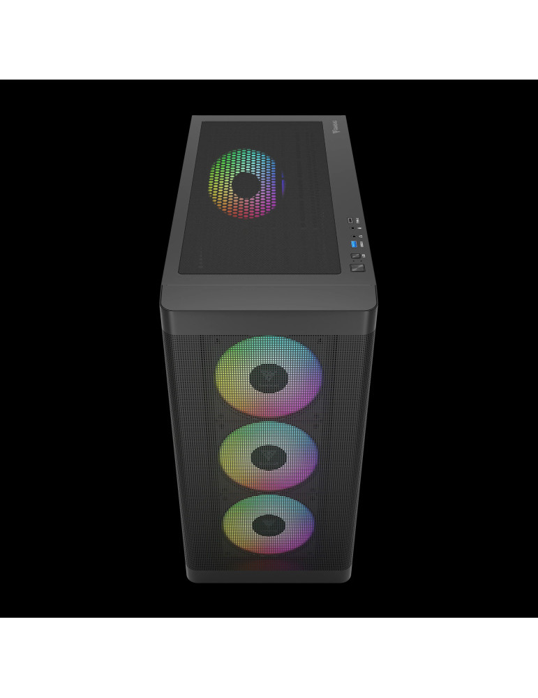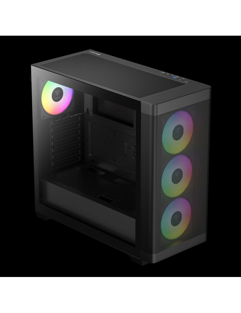 | ДОПЪЛНИТЕЛНИ | 4 Built-in PWM ARGB Fans with 8-port Hub Advanced Mesh Front Panel for Optimal Ventilation Gen 2 Type-C Port Ready PSU length limitation: 200 mm Supports Motherboards up to E-ATX Sync with 5V ARGB Motherboard |