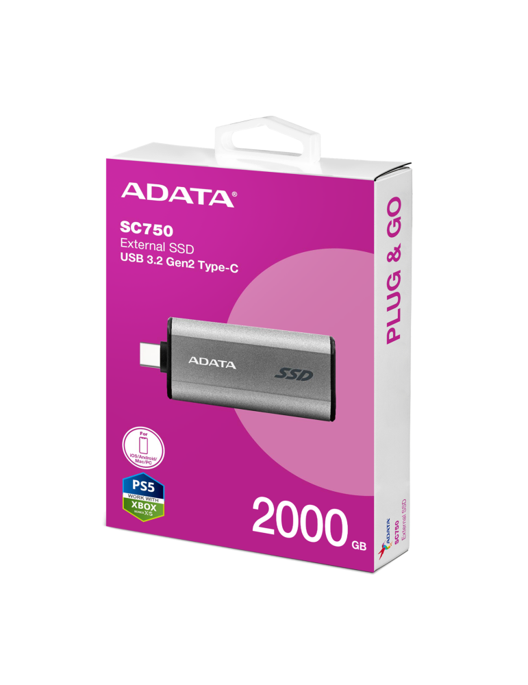Външно SSD диск Adata 2TB XPG SC750, USB 3.2 Gen 2 Type-C - SC750-2000G-CCBK