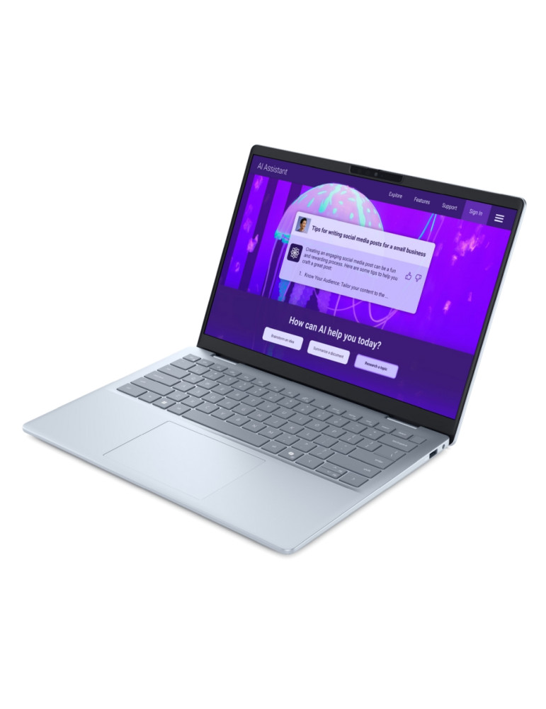 Лаптоп Dell 14 Plus DB14250, Intel Core Ultra 7 256V (47 TOPS NPU, 8 cores, up to 4.8 GHz), 14.0" 2.5K (2560x1600) WVA/IPS 300nits AG, 16 GB: LPDDR5x, 8533 MT/s (onb), 1TB M.2 SSD, Intel Arc, FHD Cam and Mic, Wi-Fi 7, Backlit Kb, Win11 Pro, Ice Blue, 3Y CI - DB14250_LNL_204