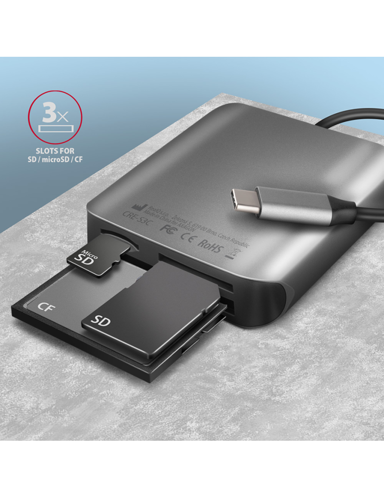Флаш памет Axagon Aluminum high-speed USB-A 3.2 Gen 1 memory card reader. 3 slots, UHS-II. - CRE-S3