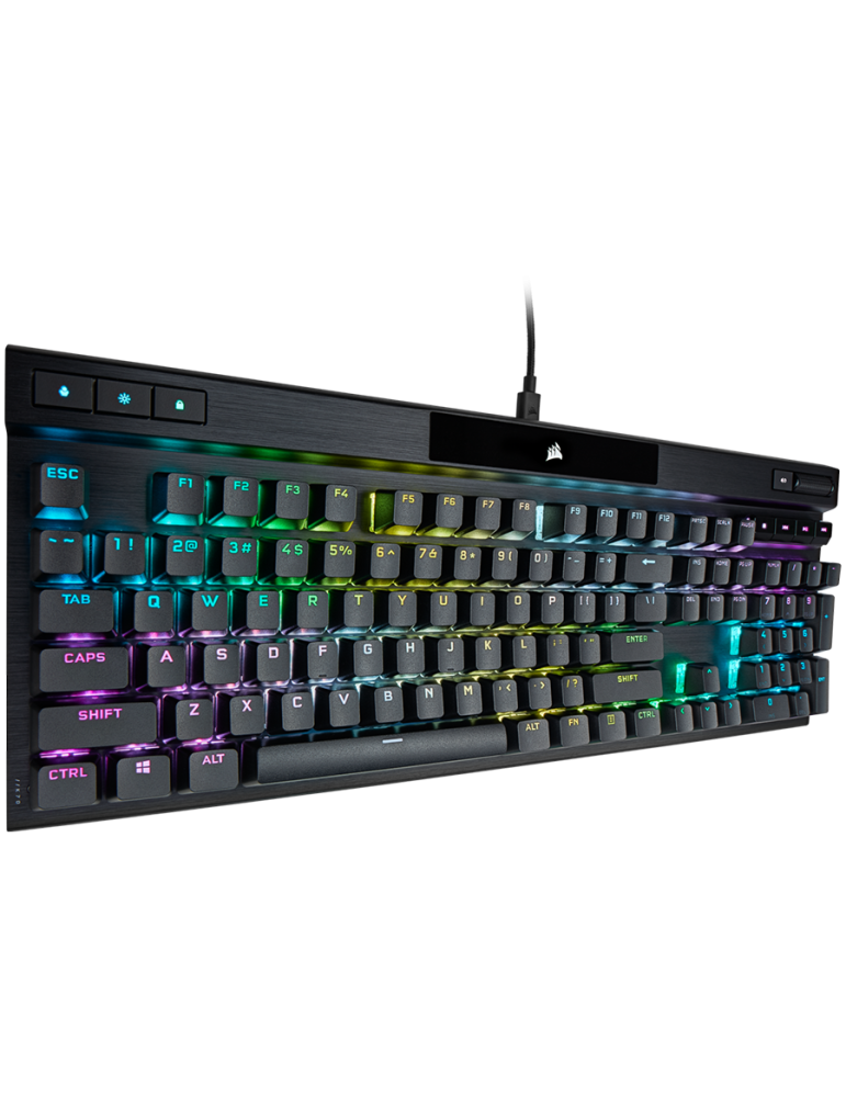 | Характеристики на клавиатурата | Wrist Rest N-Key rollover Aluminium plate Built-in Memory RGB Backlighting Adjustable Tilt Legs iCUE Compatible Anti-Ghosting Technology Braided Fiber Cable 8000 Hz HyperPolling PBT Keycaps CORSAIR OPX Optical-Mechanical Keyswitches |