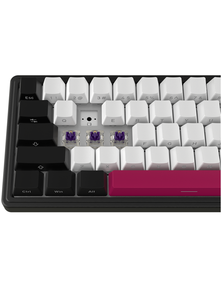 | Характеристики на клавиатурата | NKRO support Hot-swappable switches Gasket mount design RGB Backlight 16 modes of backlight Miltimedia knob Multicolored keys Charge level indicators keys (1-0) |