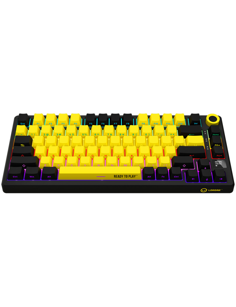 Безжична механична геймърска клавиатура Lorgar KBP7075W, 75% Mechanical Gaming Keyboard Pro, Black/yellow, EN layout - LRG-KBP7075W-YL-US