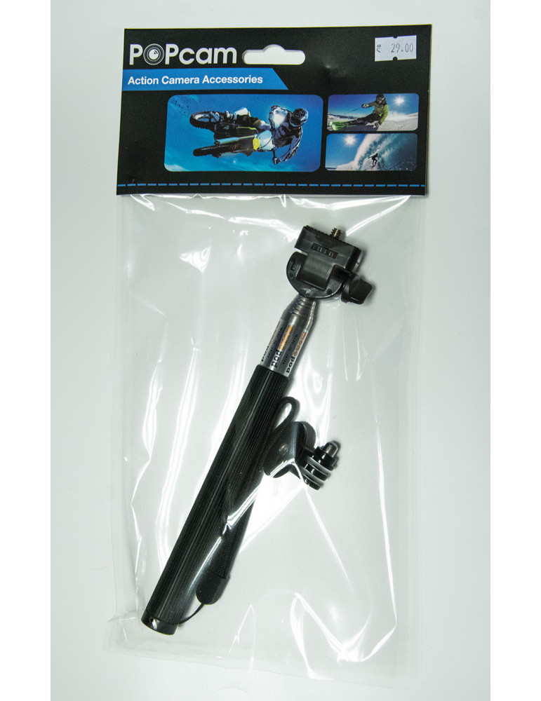 В комплекта е включен и трипод за свързване на камерата към пръчката