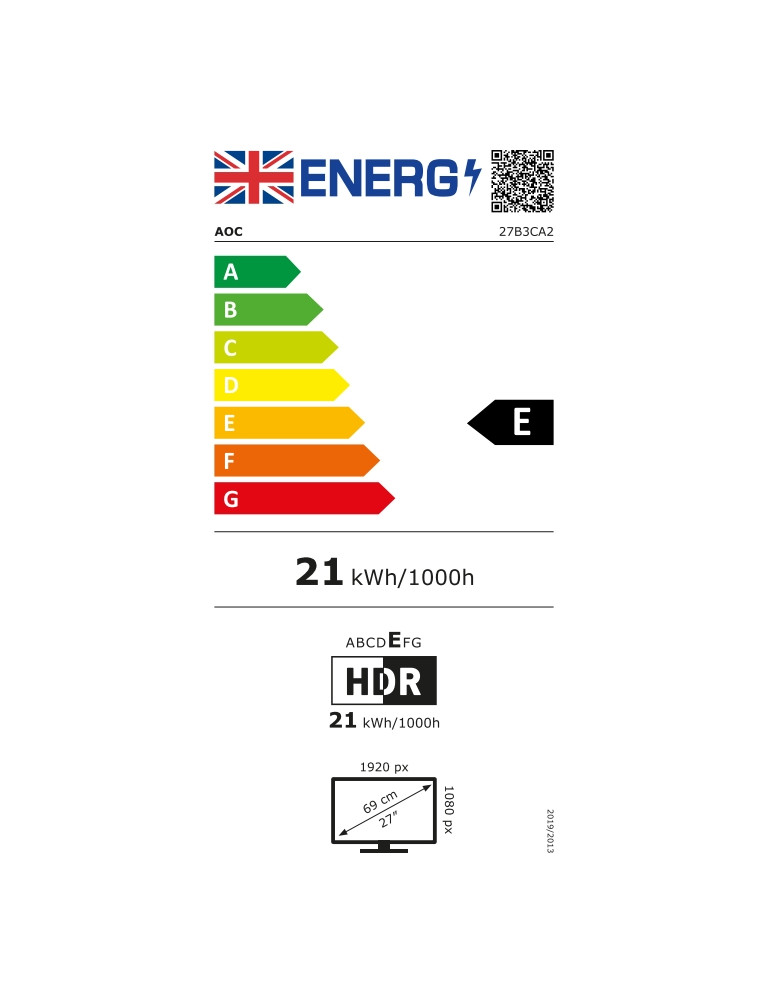 Монитор AOC 27B3CA2, 27" IPS WLED, 1920x1080@100Hz, 4ms GtG, 1ms MPRT, 250cd m/2, 1300:1, 20M:1, Adaptive Sync, FlickerFree, Low Blue Light, 2Wx2, Tilt, HDMI, USB hub
