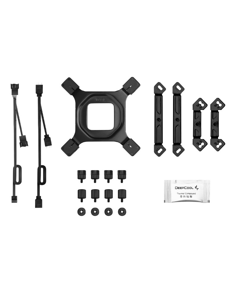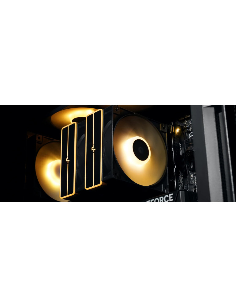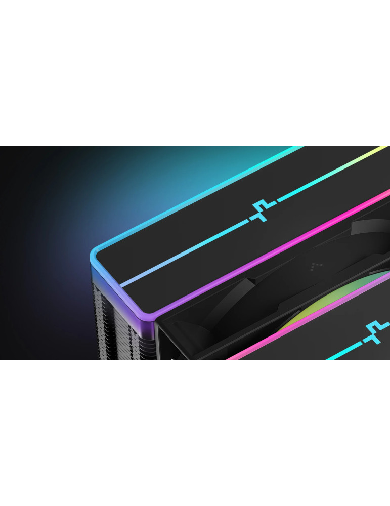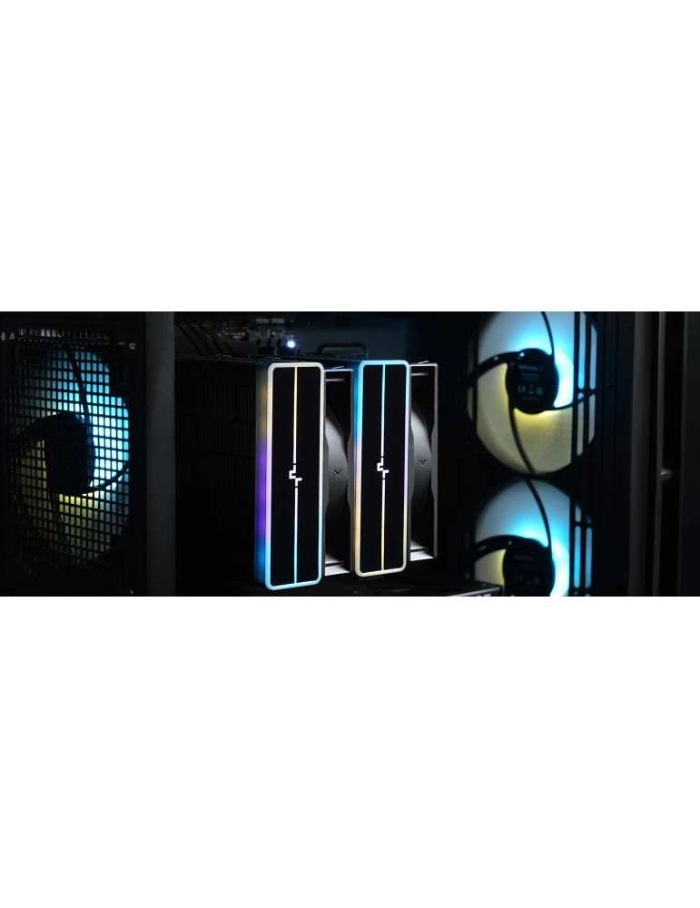 | ДОПЪЛНИТЕЛНИ | DeepCool`s recognizable matrix fin stack design is finished in a dark black coating and provides an excellent cost-to-value ratio Get the best of both worlds with two fine-tuned 120mm ARGB PWM fans designed for optimal balance in top performance under load to silent efficiency when idle Paired with a unique ARGB top cover and a minimalist translucent logo design |