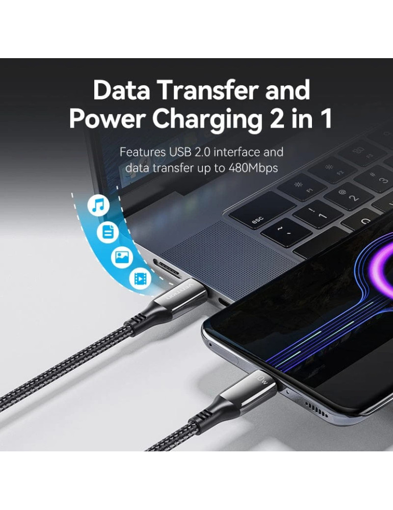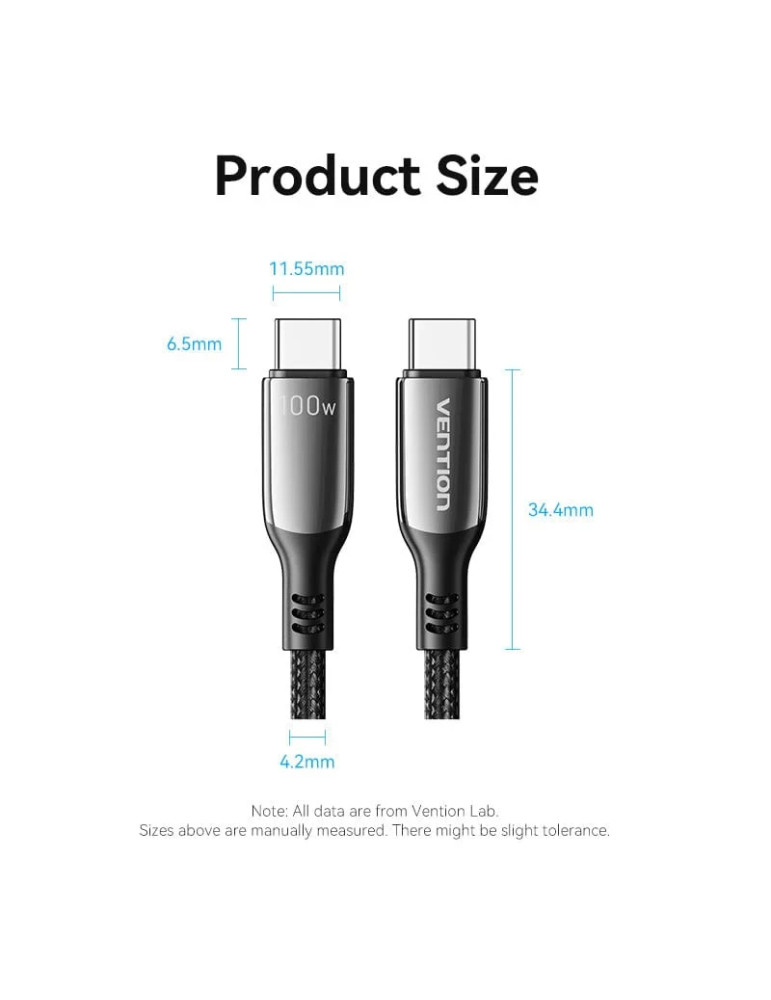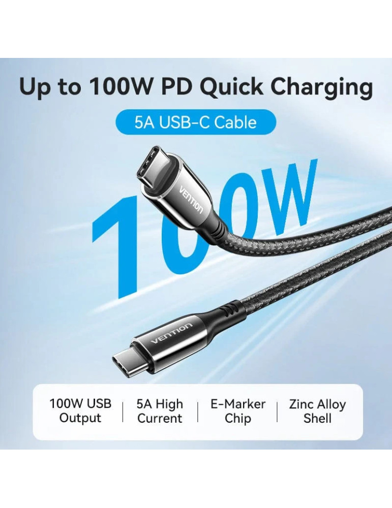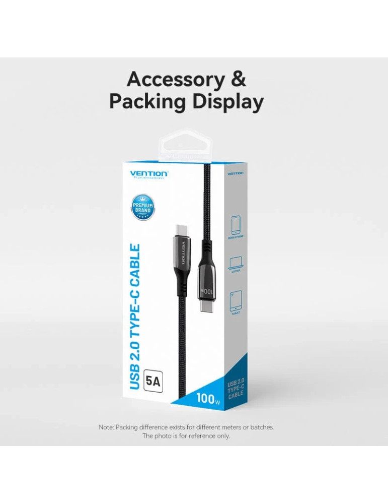 Кабел Vention USB2.0 Type-C/Type-C 100W, LED display 2m - CTKBH