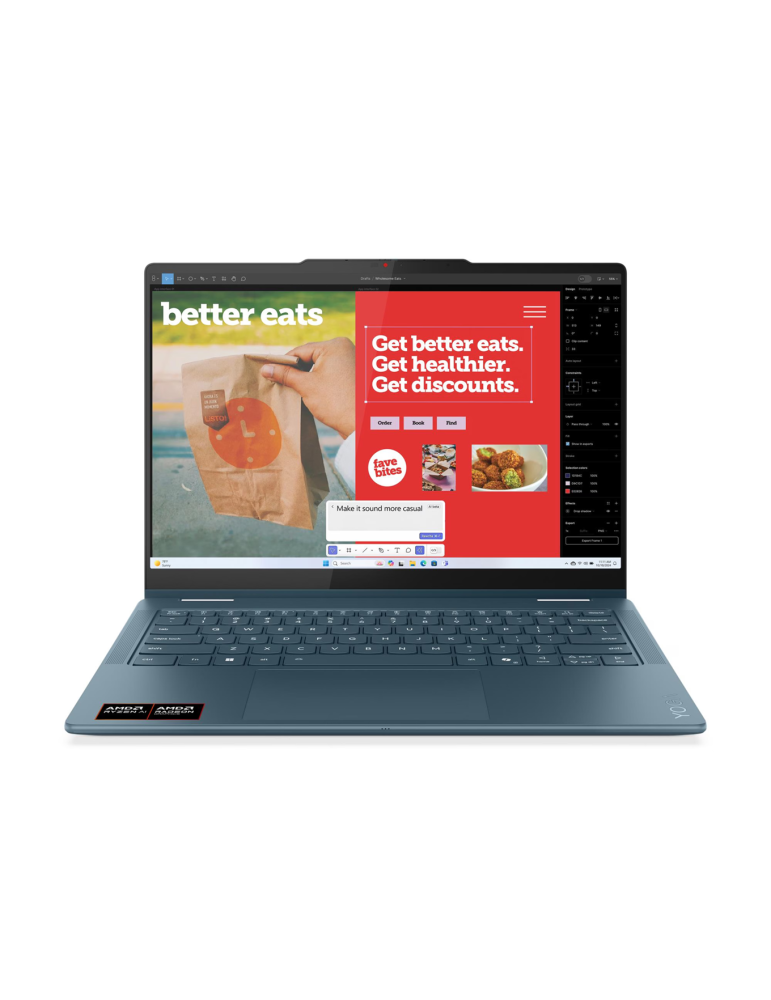 Лаптоп Lenovo Yoga 7 2in1, AMD Ryzen AI 5 340, 14" WUXGA OLED 600nits Glossy / Anti-fingerprint, 100% DCI-P3, Touch, 24GB RAM, 1TB SSD, AMD Radeon 840M, Win 11 Home, English - 83JR000YBM