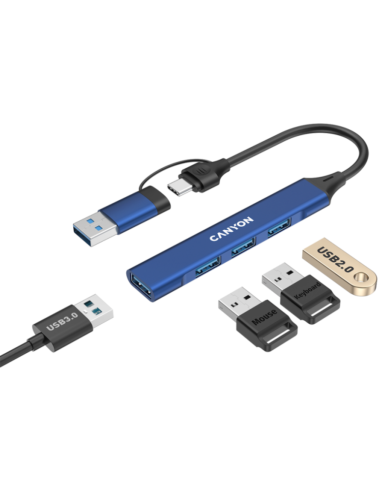 | Търговско име | CANYON hub DS-02 4in1 USB-A/C Blue |
