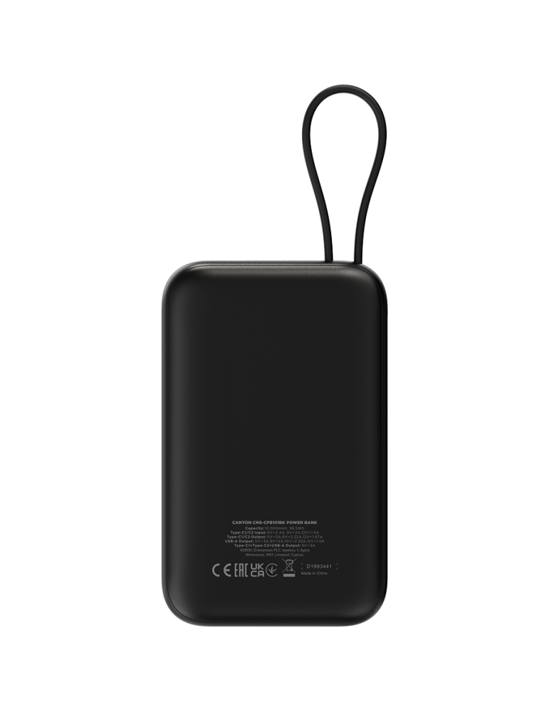 | Търговско име | CANYON power bank OnPower 101 built-in cable 10000 mAh PD22.5W Black |