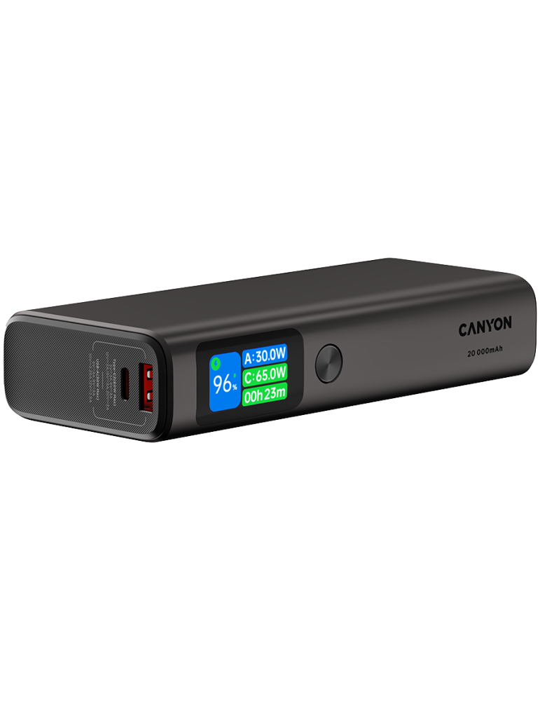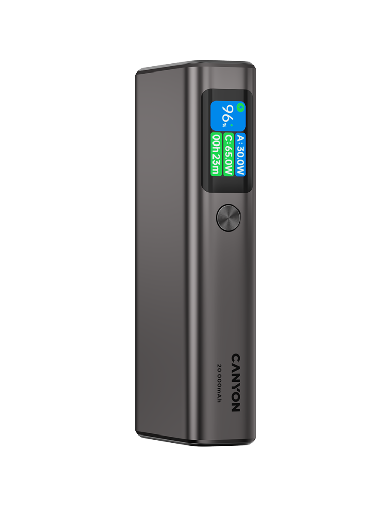 | Търговско име | CANYON power bank OnPower 230 TFT 20000 mAh PD130W Dark Grey |