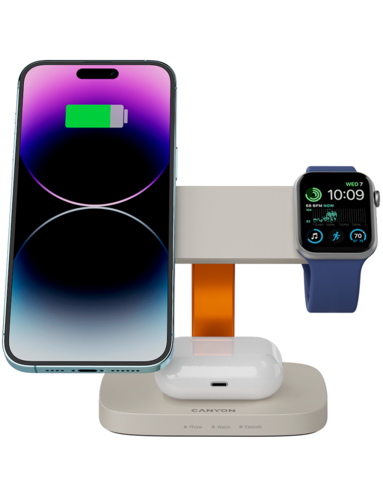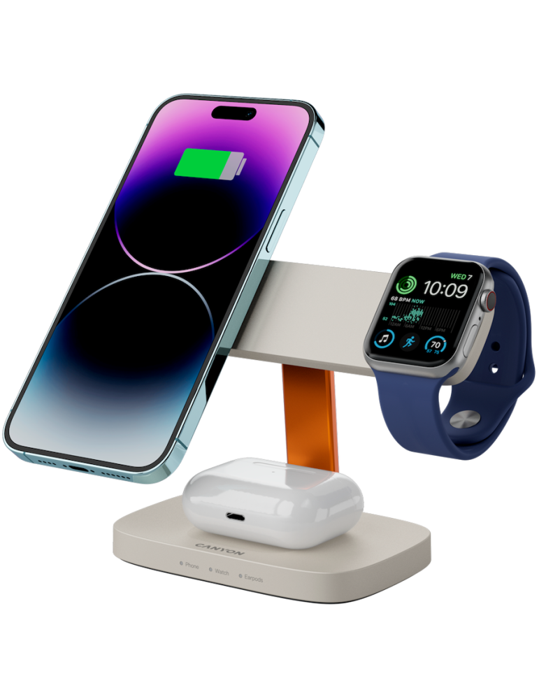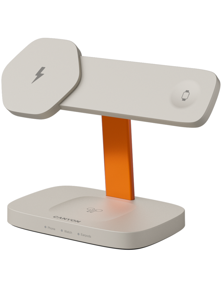 Безконтактно зарядно Canyon Hexagon 310 3in1 LightGrey/Orange - CNS-WCS310LGOR
