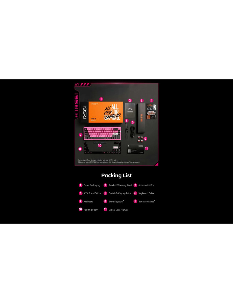 Професионална геймърска механична клавиатура ATK RS6 Ultra, 8K, TTC RGB Magneto [Linear] - Sakura Warrior - RS6-ULTRA-SAKURA-TTC