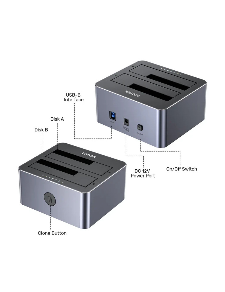 Докинг станция Unitek Storage - HDD Dock, 2 BAY - Y-3026GY01-EU