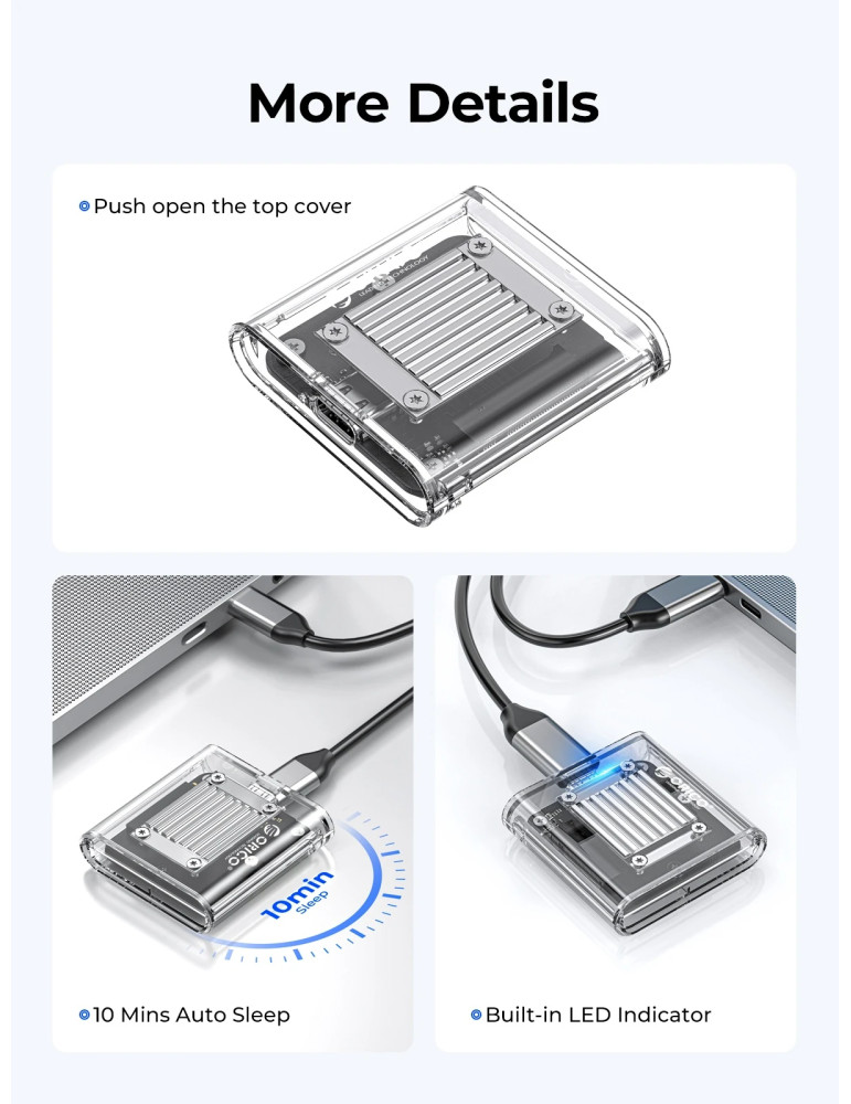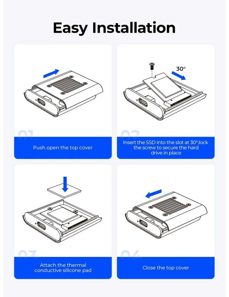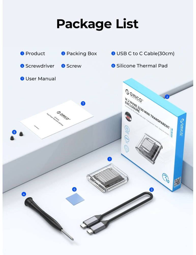 | Х-КА 6 | Package Included - USB-C to USB-C, 0.3M Length Package IncludedSSD Enclosure*1, Data Cable*1, Silicone Thermal Pad*1, User Manual*1, Screw Kit*1, Screwdriver*1 |