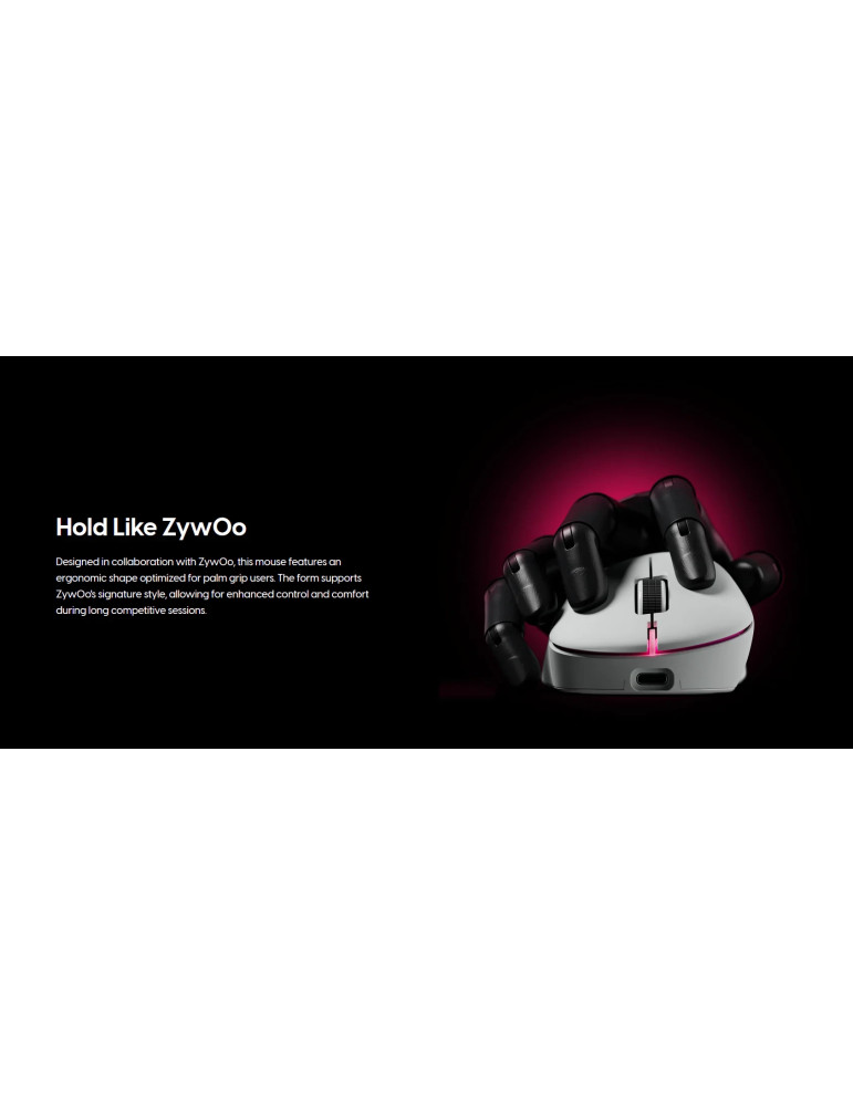 | ДОПЪЛНИТЕЛНИ | Crafted together with ZywOo to offer outstanding support and precision, optimized for palm grip and an ergonomic shape Equipped with a 5.8g weight module, enabling precise adjustment of the mouse?s total weight and center of gravity to match individual performance preferences Ergonomic Shape Fully customizable keys and macros Fully customizable sensor setting Huano Blue Shell Pinkdot v2 delivers crisp, responsive clicks with fast rebound and 80M click durability Web-based software exclusive to ZywOo |