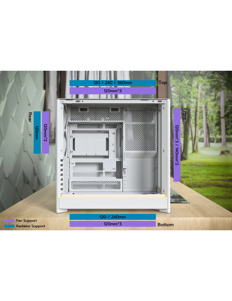 | ДОПЪЛНИТЕЛНИ | Adjustable Front Fan Bracket Back-Connect Motherboard Ready Innovative Interior Design PSU: 200 mm ATX / SFX Pre-Installed 5 PWM ARGB fans (Bottom - Reversed) Reversible Layout Sink-in Design Vertical Ventilation |