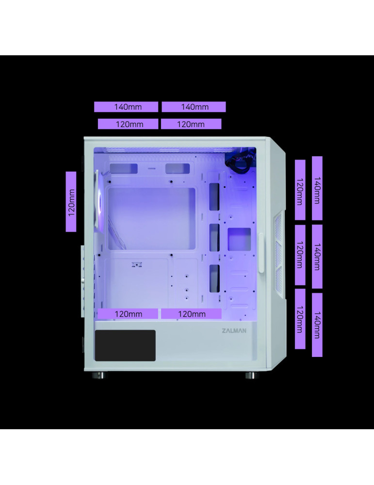 Кутия за компютър Zalman i3 NEO ARGB White, ATX, Mesh, aRGB, Tempered Glass - I3-NEO-ARGB-White