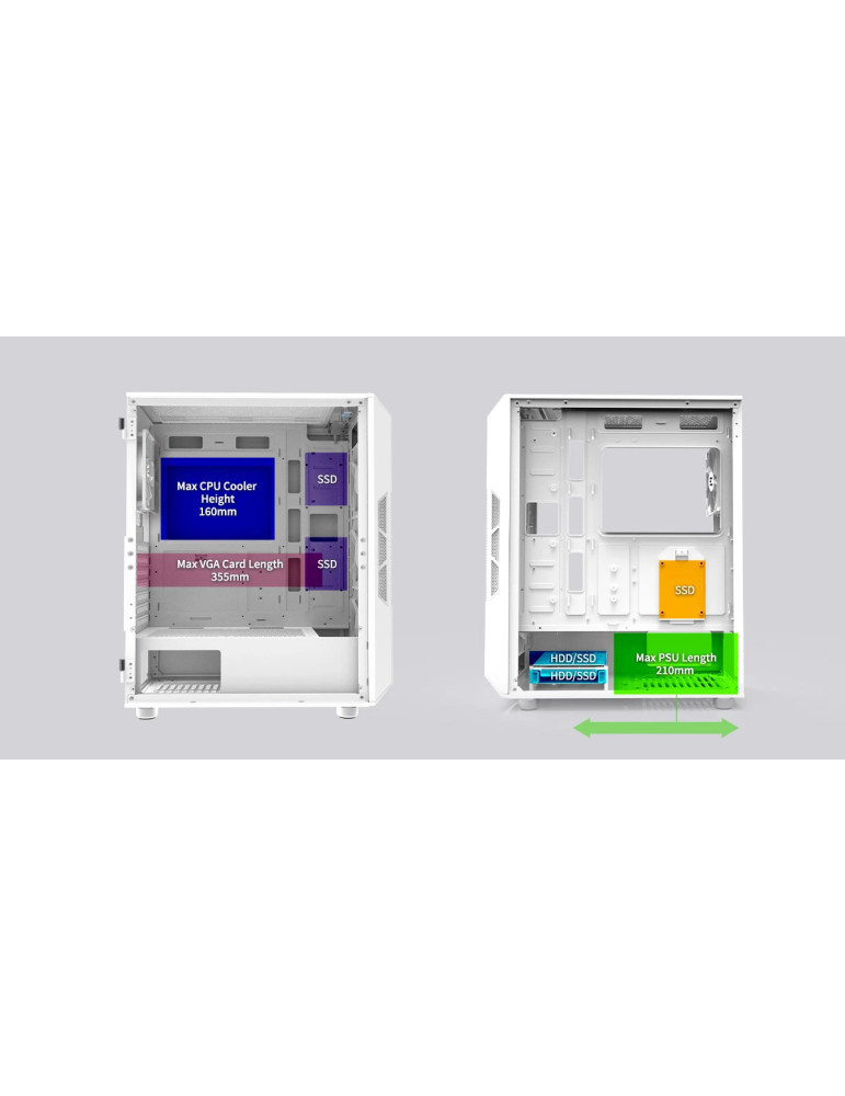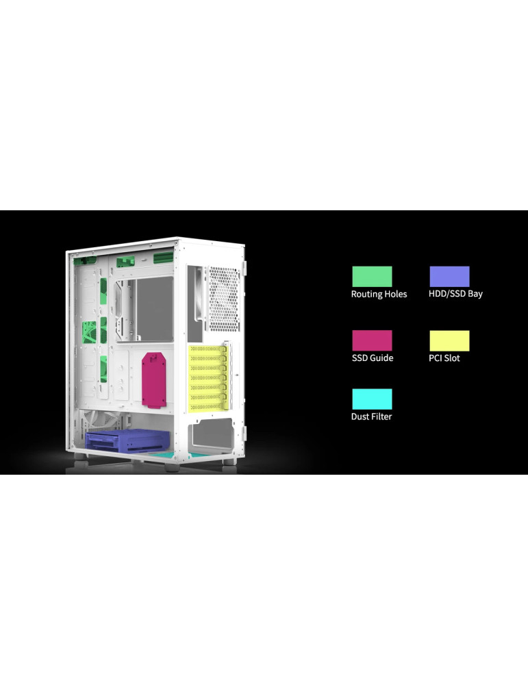 | ДОПЪЛНИТЕЛНИ | ARGB CONTROLLER Easy accessible design on top I/O ports Edgeless Premium Tempered Glass Side Panel Front Mesh Panel High Cooling Performance Maximum PSU Length: 210 mm Professional Cable Management Top and bottom magnetic dust filters |