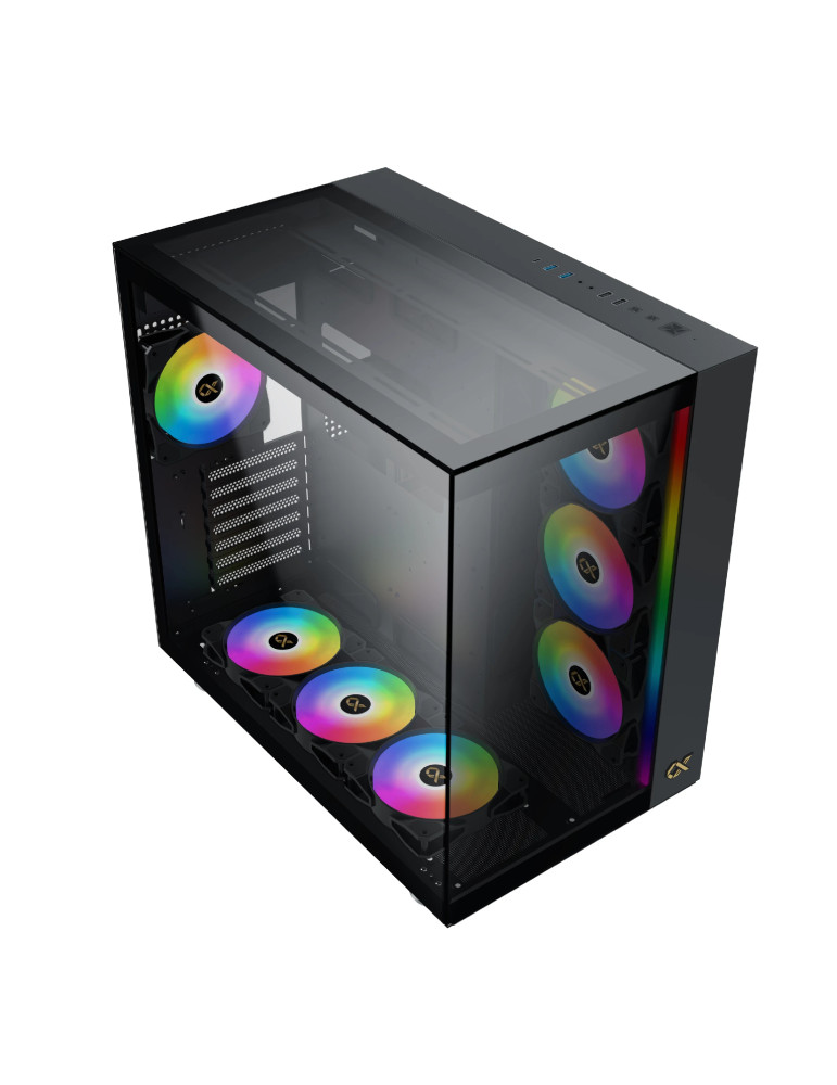 | ДОПЪЛНИТЕЛНИ | Bottom to Top Vertical Airflow Design PSU Length Limitation 220 mm Removable 2PCS HDD/SDD Cages Included Removable Top Fan Rack Seamless Front ; Left Panel with Dynamic ARGB LED Bar Support VGA Vertical Installation Top Tempered Glass with Removable Fan or AIO Liquid Cooler Bracket |
