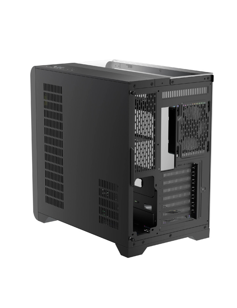 | ДОПЪЛНИТЕЛНИ | Bottom, rear and side ventilation ensures excellent cooling performance Front and top feature intergrated U-shaped tempered glass LED display monitors CPU, memory usage, temperature and frequency Pull-out dust filter at the bottom for easy cleaning and maintainance Support 360 mm radiator on the right panel |