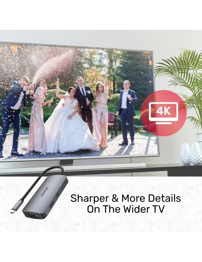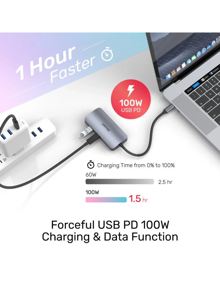Докинг станция Unitek Type-C 5-in-1, uHUB P5 Trio D1051A - USB-C PD100W x 1, HDMI x 2, VGA, USB3.0 x 1
