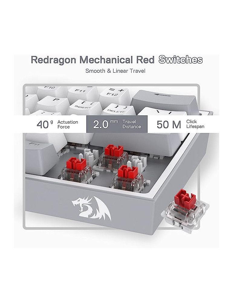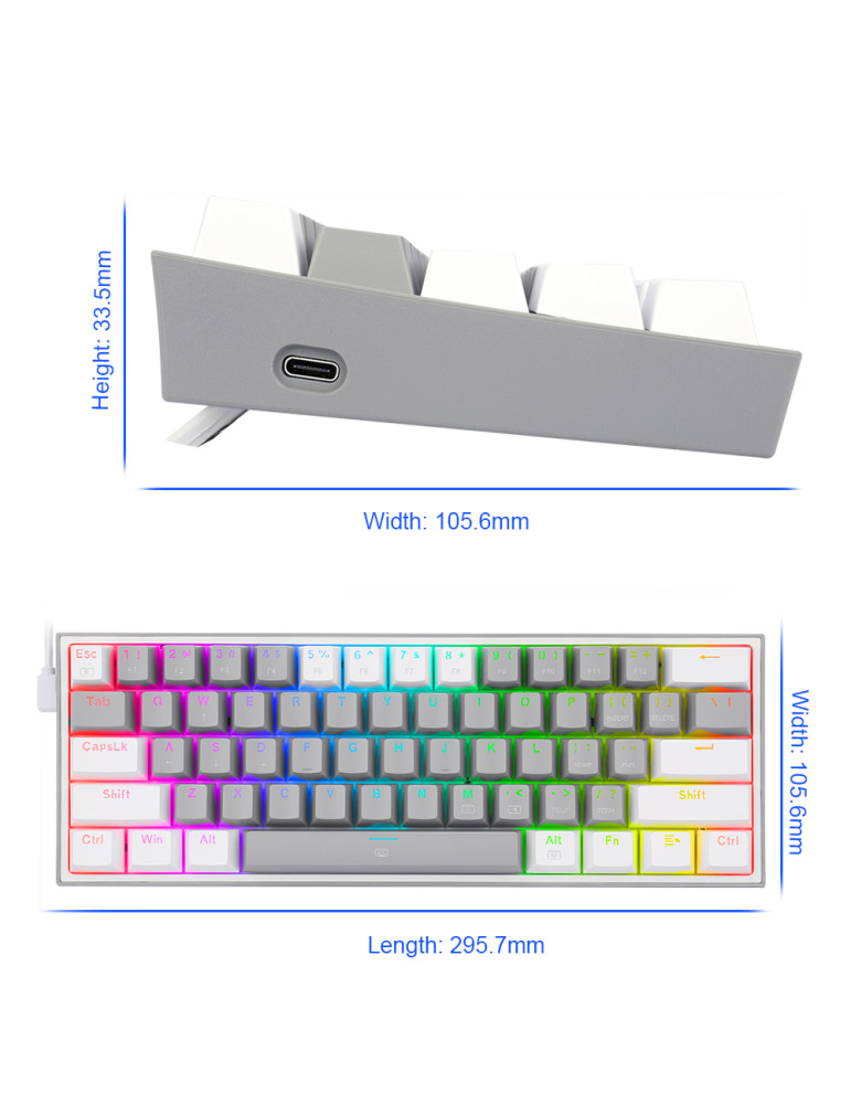 Геймърска еханична клавиатура Redragon Fizz K617-RGB-GW, RGB, сиво/бяло - K617-RGB-GW_RD
